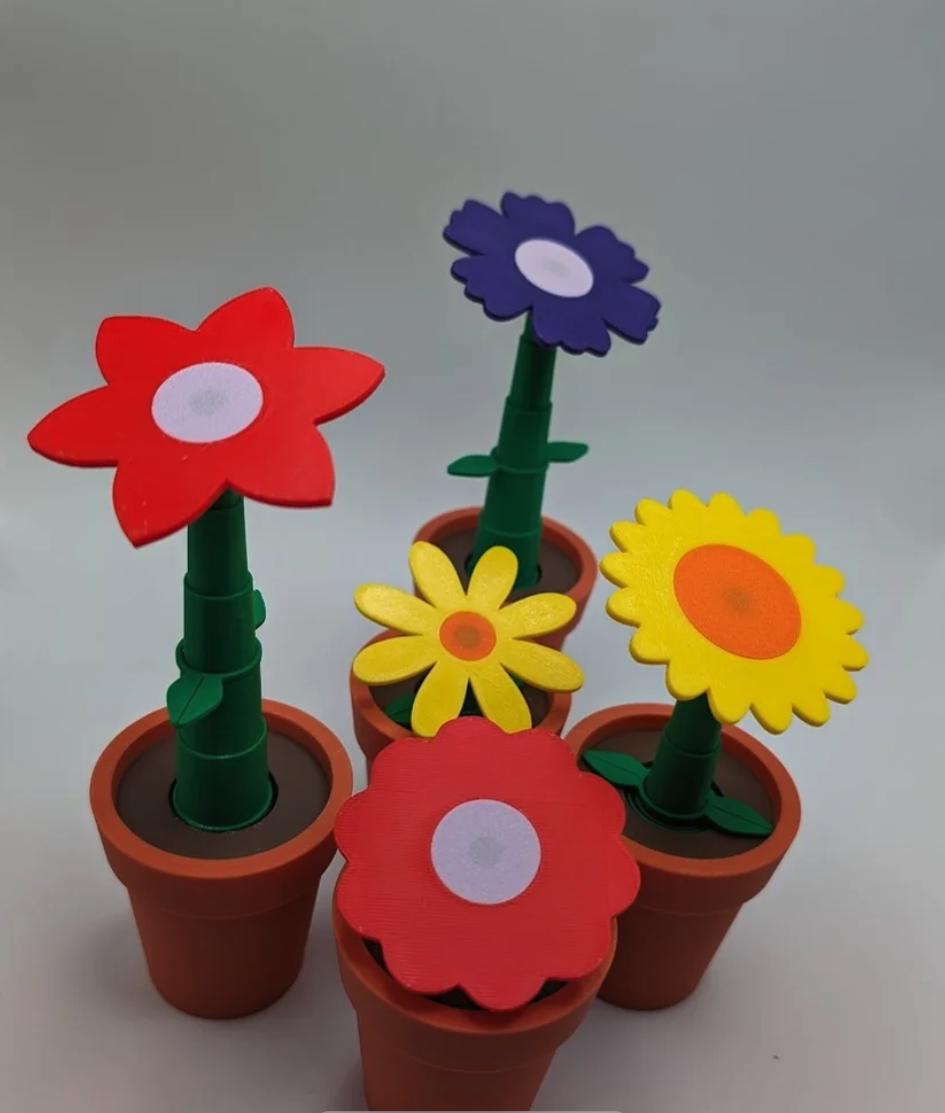 🌟 Features: 🌼 Magically Growing Flowers – As you "pour water," the flower stalk extends, mimicking real growth! 🌿 3D-Printed Design – Durable, high-quality PLA filament for a vibrant, handcrafted look. 🪴 Realistic Flower Pot Design – Perfect for displaying as decor, stress relief, or interactive play. 🎁 Great for Gifting – Ideal for plant lovers, kids, or as a fun office desk accessory. 💡 Perfect for: ✔️ Montessori & sensory play ✔️ Office desk fidget toy ✔️ Home & nursery decor ✔️ Unique gifts for plant lovers