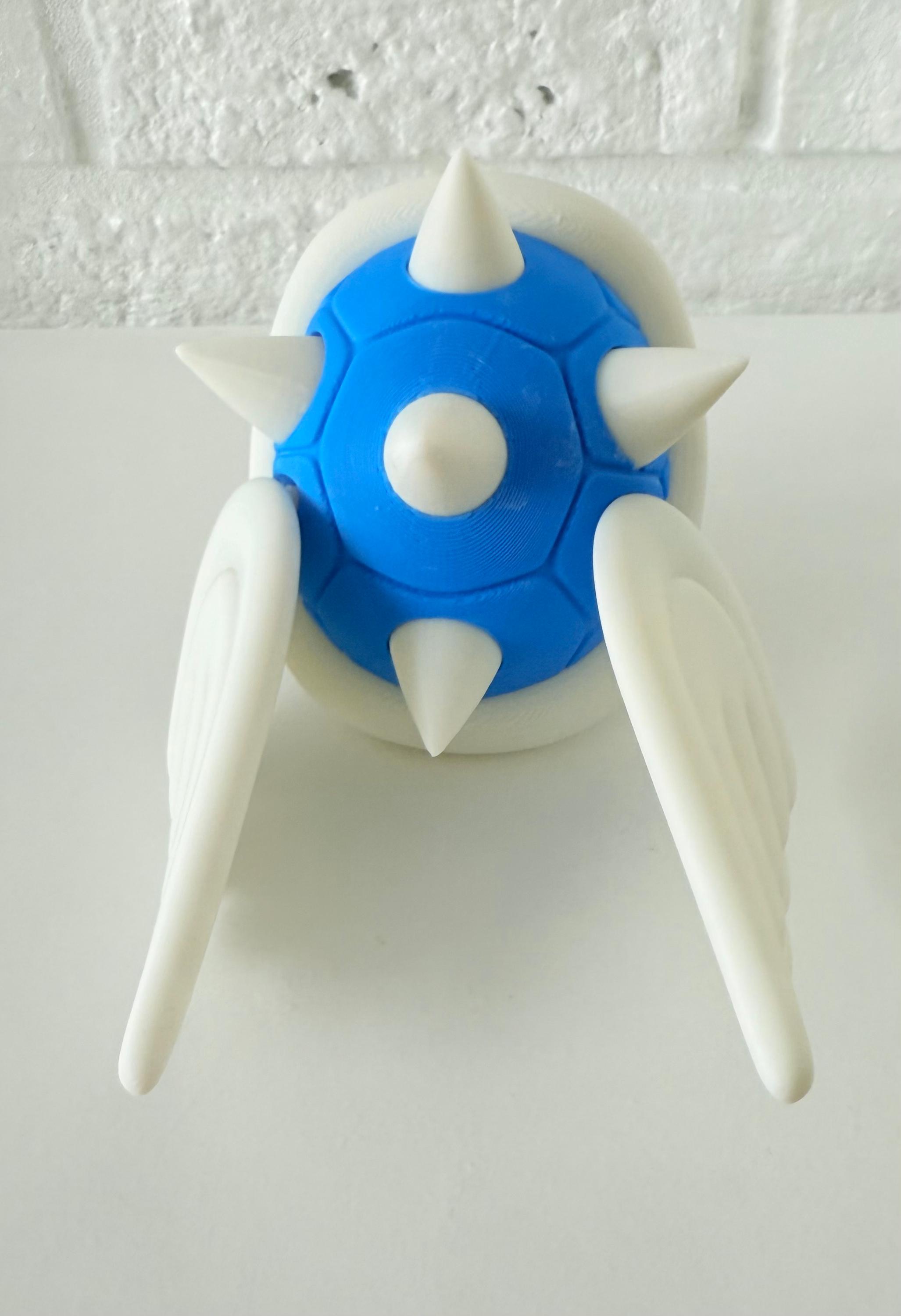 Iconic design featuring a blue shell, white spikes, and detailed wings