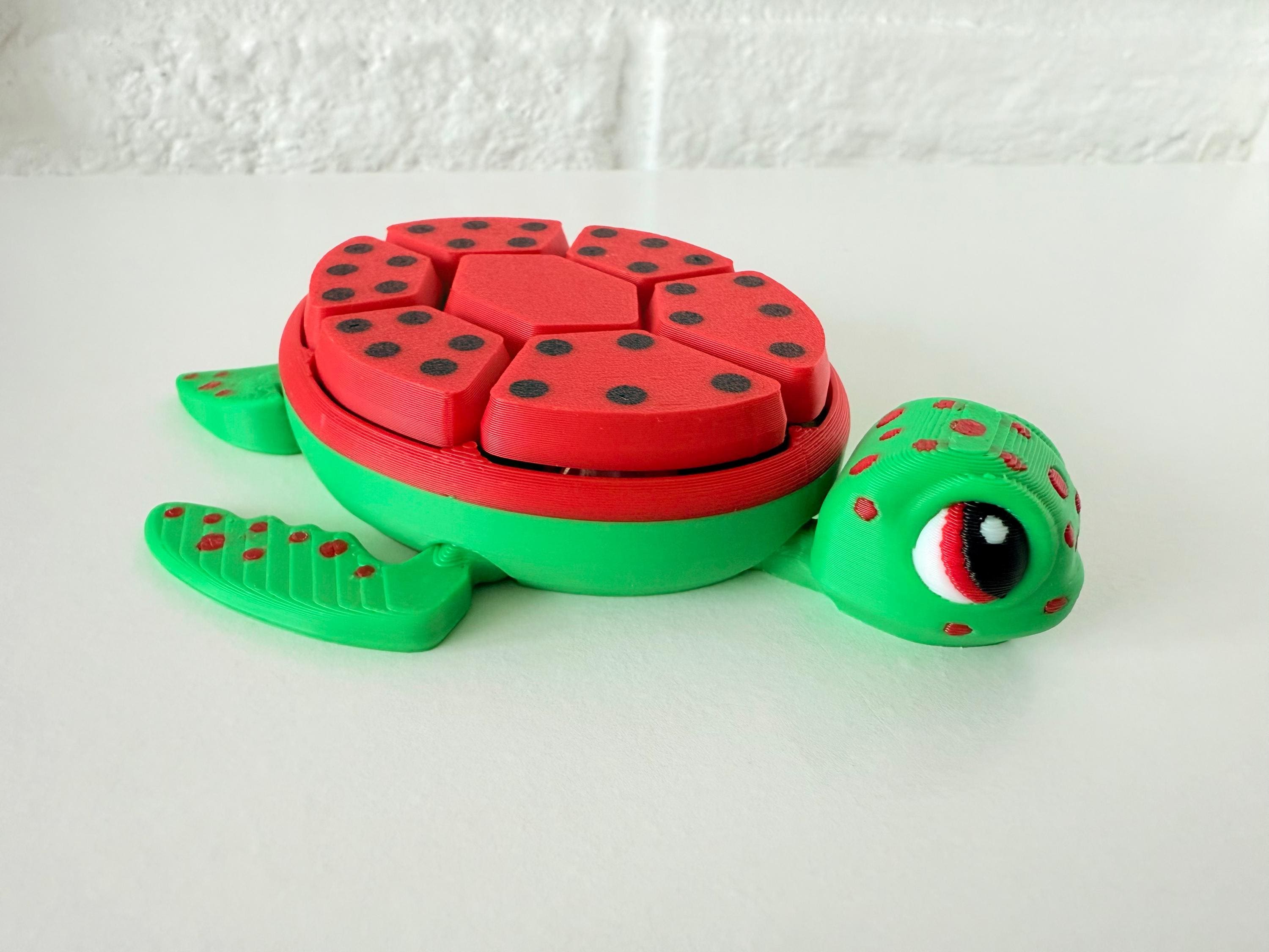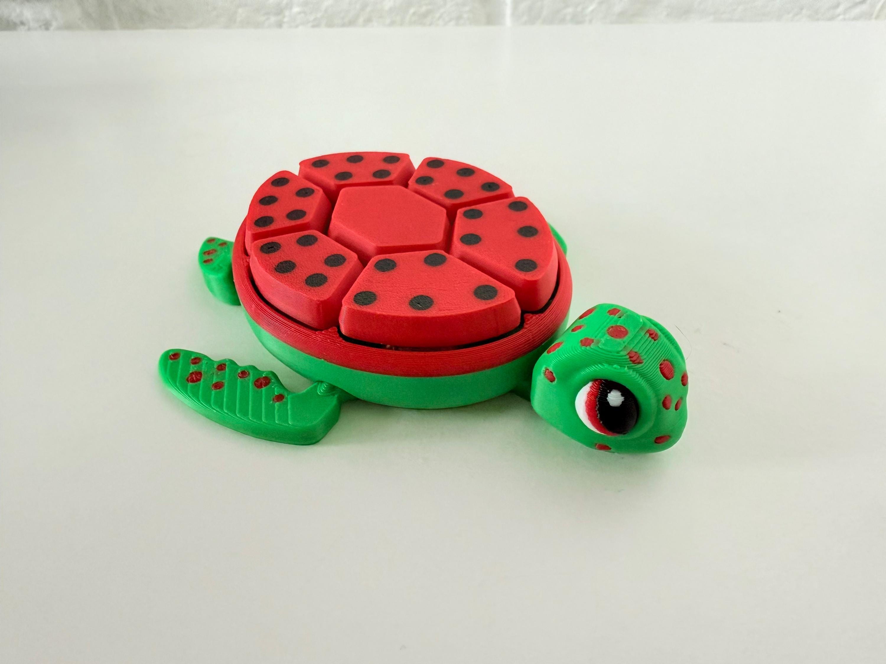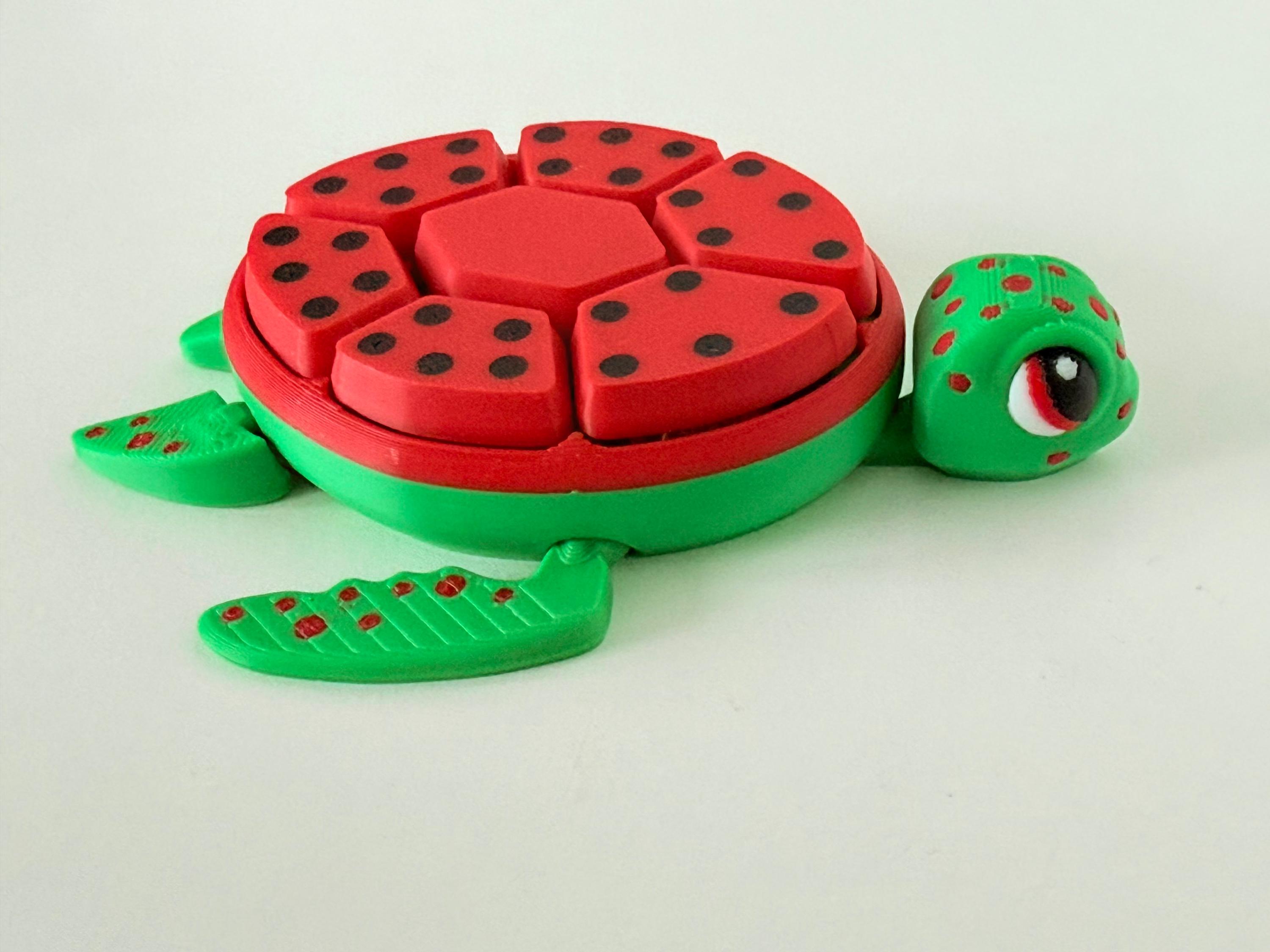 Meet your new favorite fidget friend – the Multiple Clicker Turtle! This watermelon-inspired 3D printed turtle is more than just cute – its articulated shell segments click and pop when pressed, making it a satisfying and fun stress-reliever for kids and adults alike.