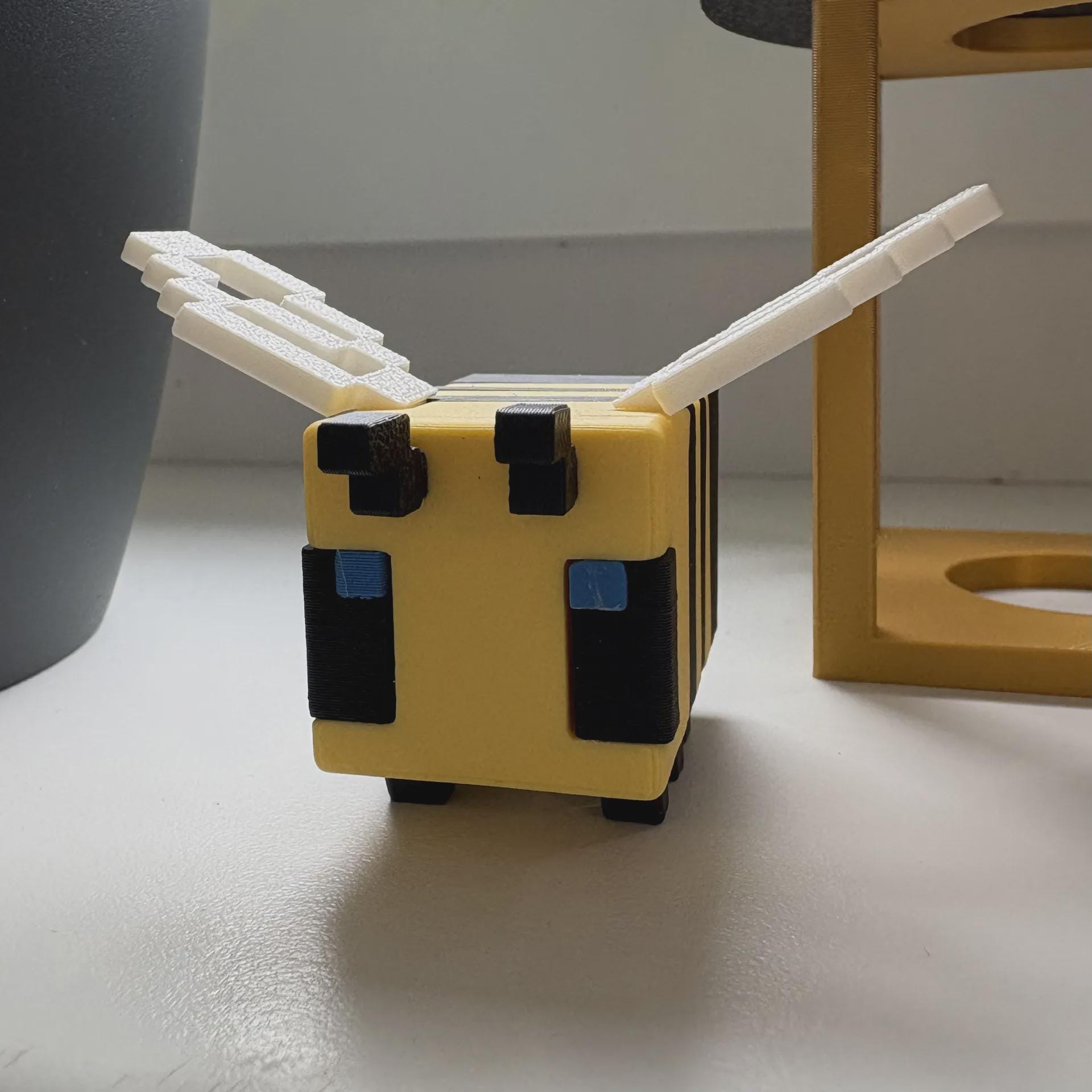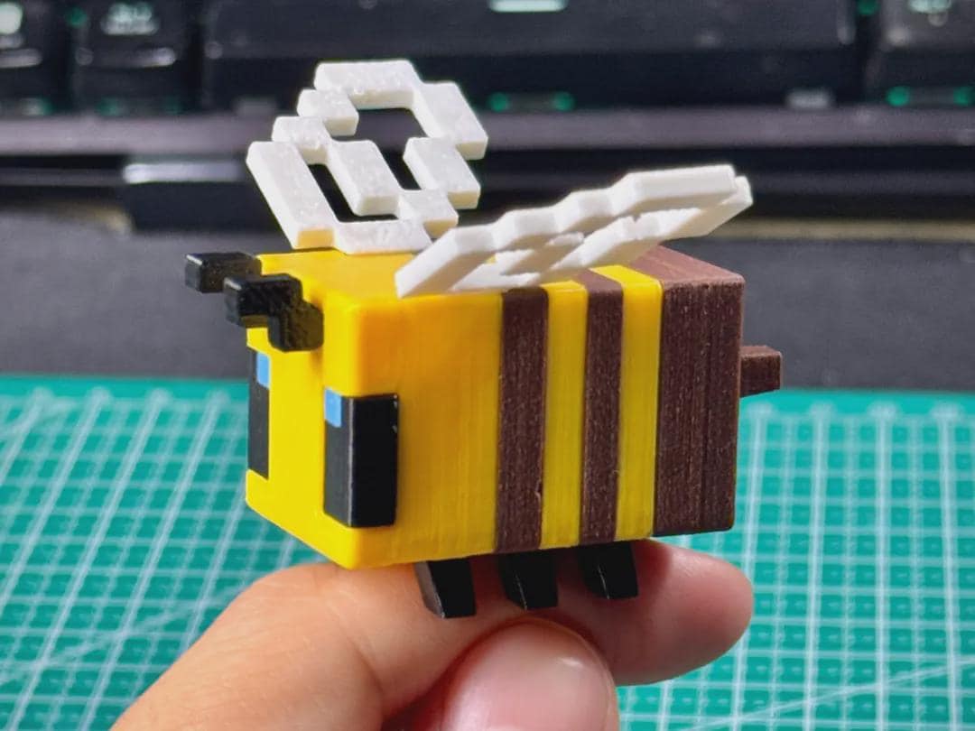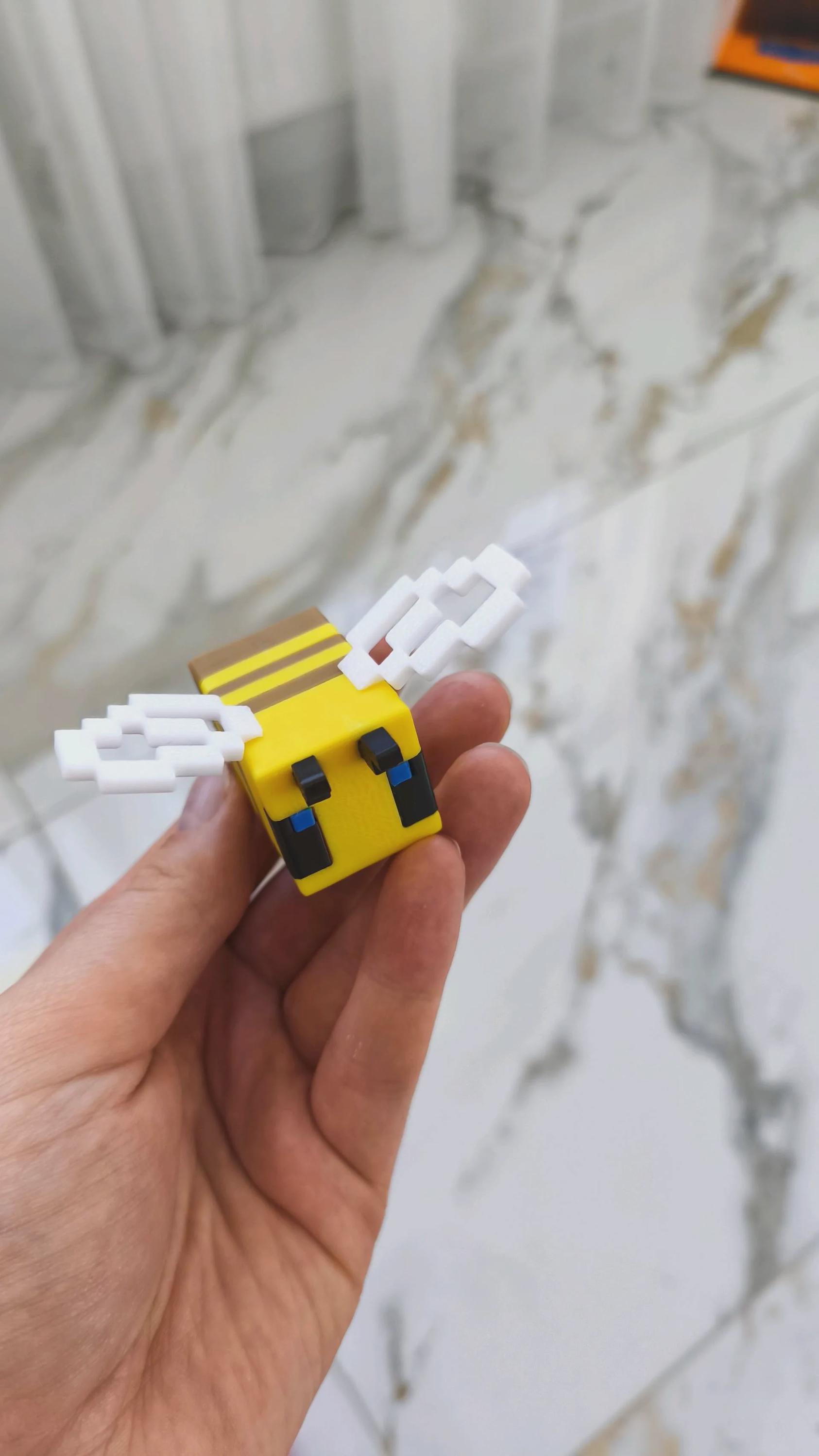 Bring a bit of the Minecraft world into your own with this adorable 3D printed bee! Inspired by the iconic in-game design, this pixelated bee features: