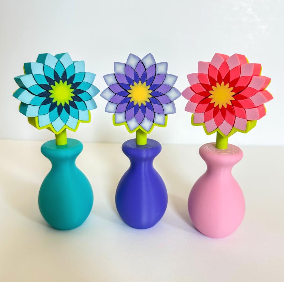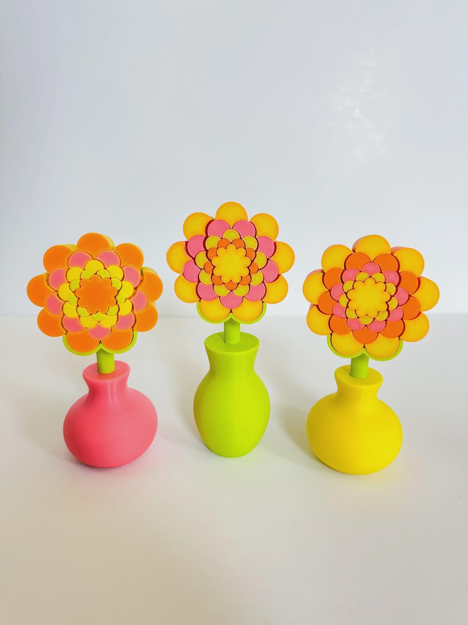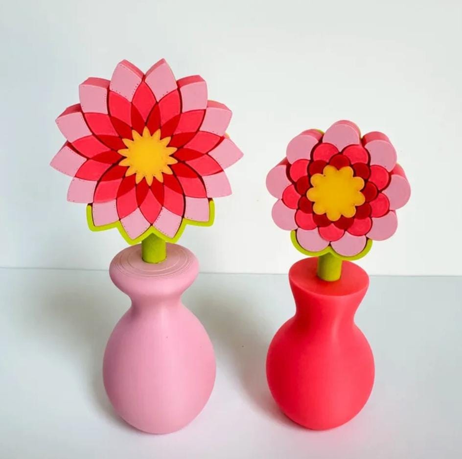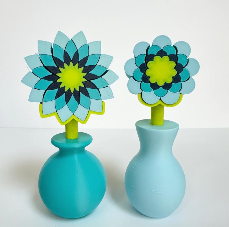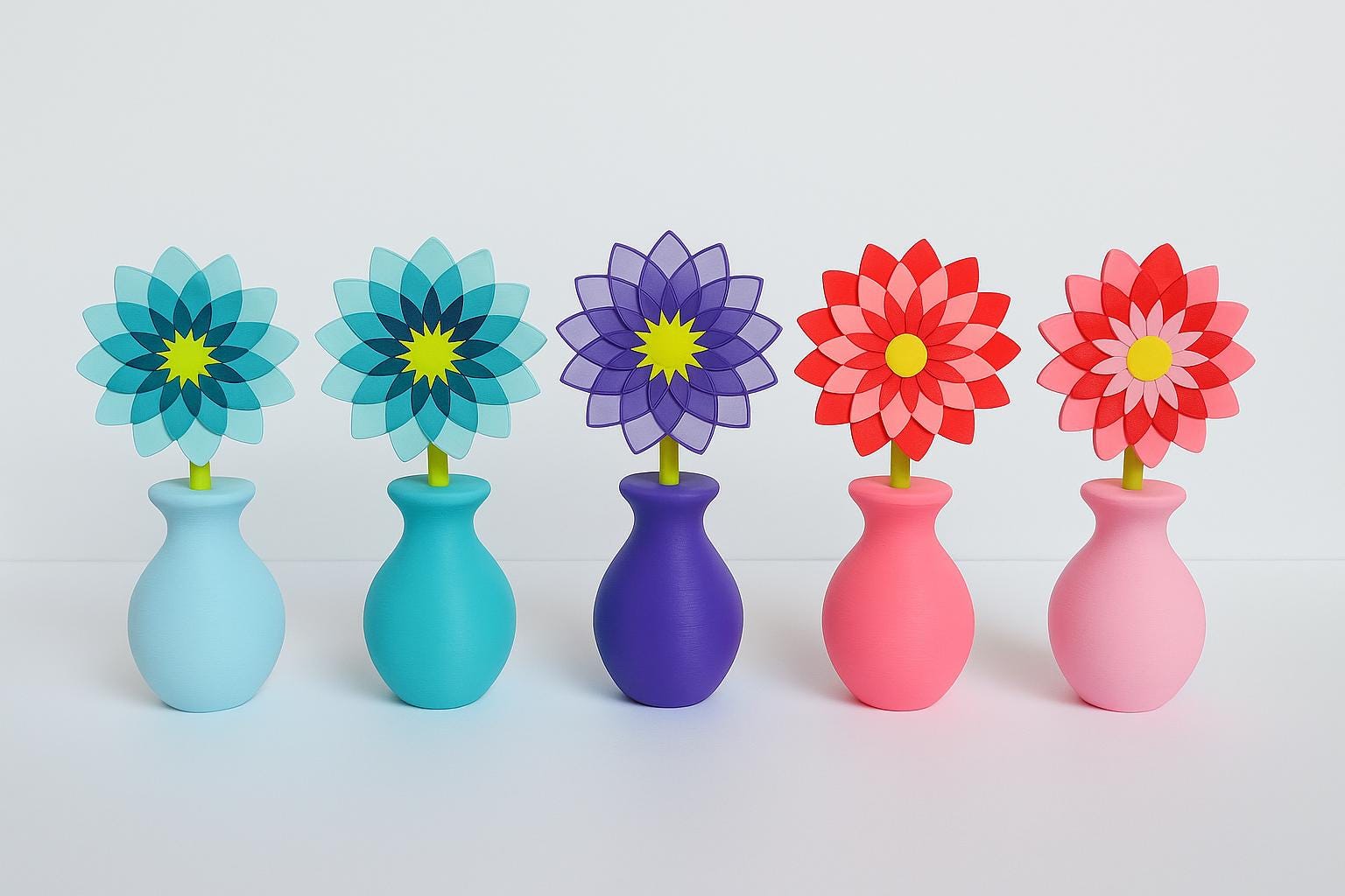 💐 No Water Needed — Just Pure Geeky Joy! Each pixel flower is 3D printed in vibrant colors and comes with a matching vase — choose from three styles and two flower sizes to build your perfect bouquet! The flexible stem makes it fun to fidget with too — part toy, part decor, 100% awesome.