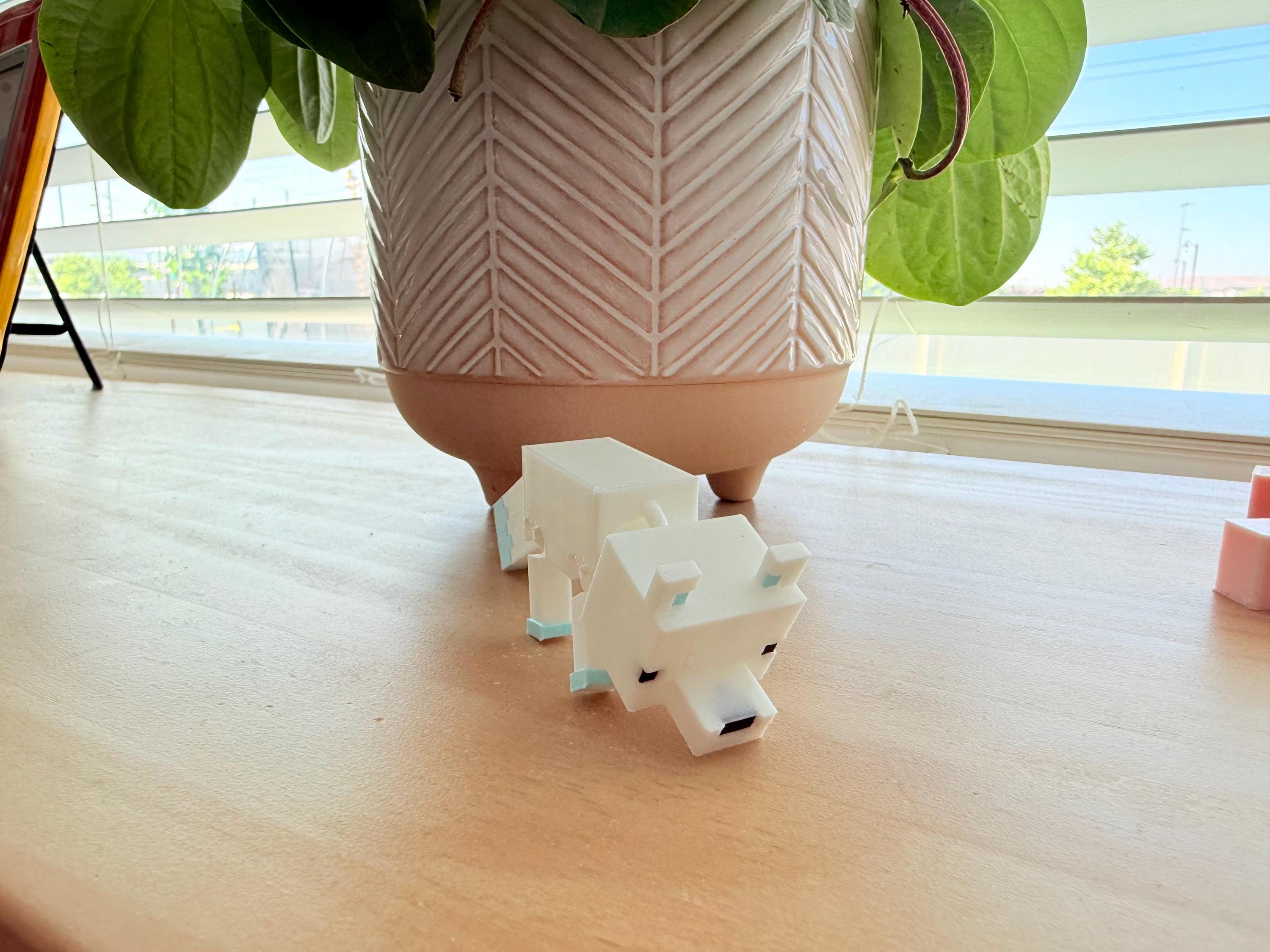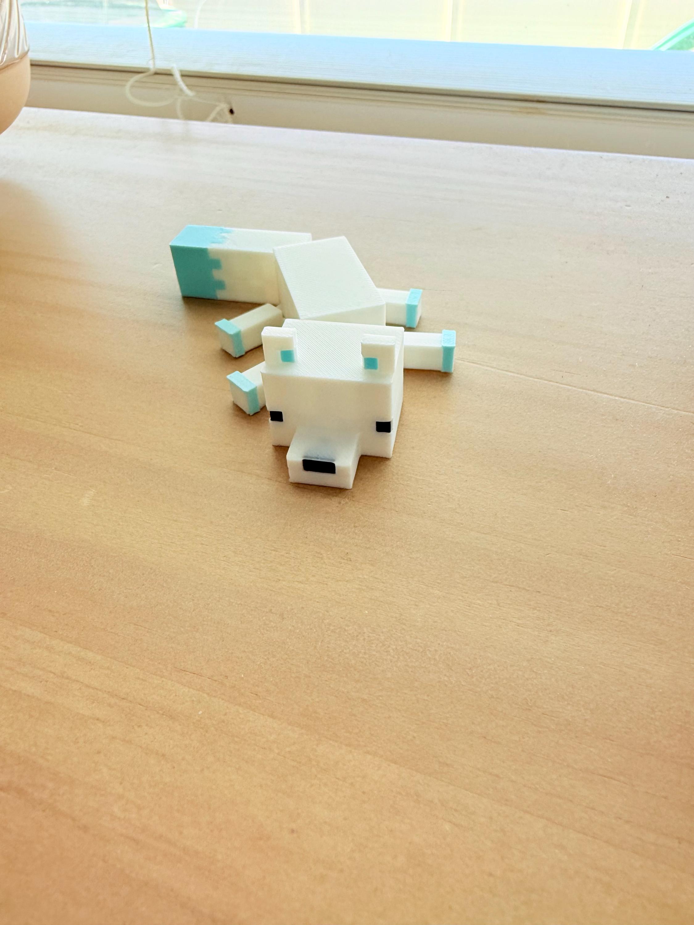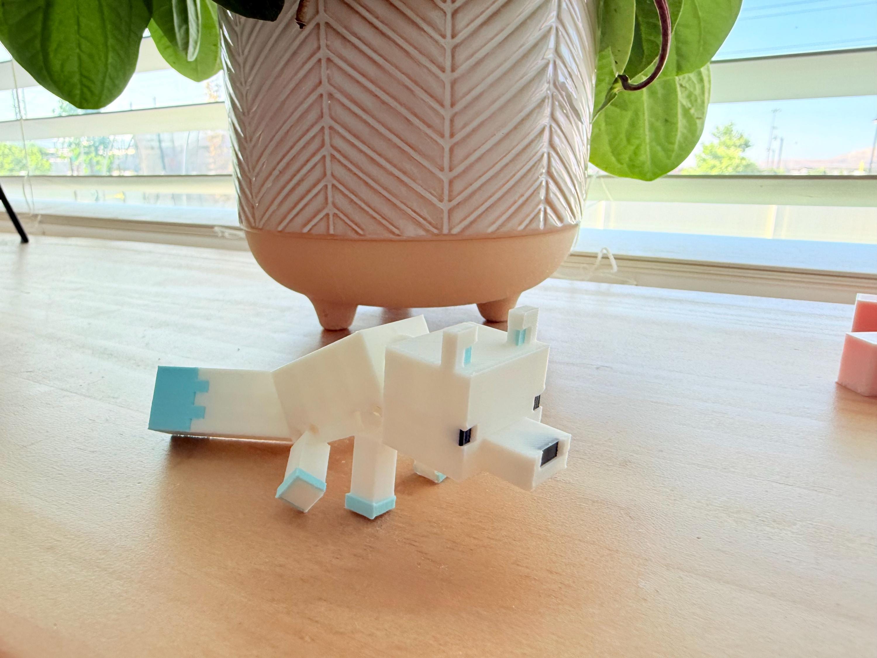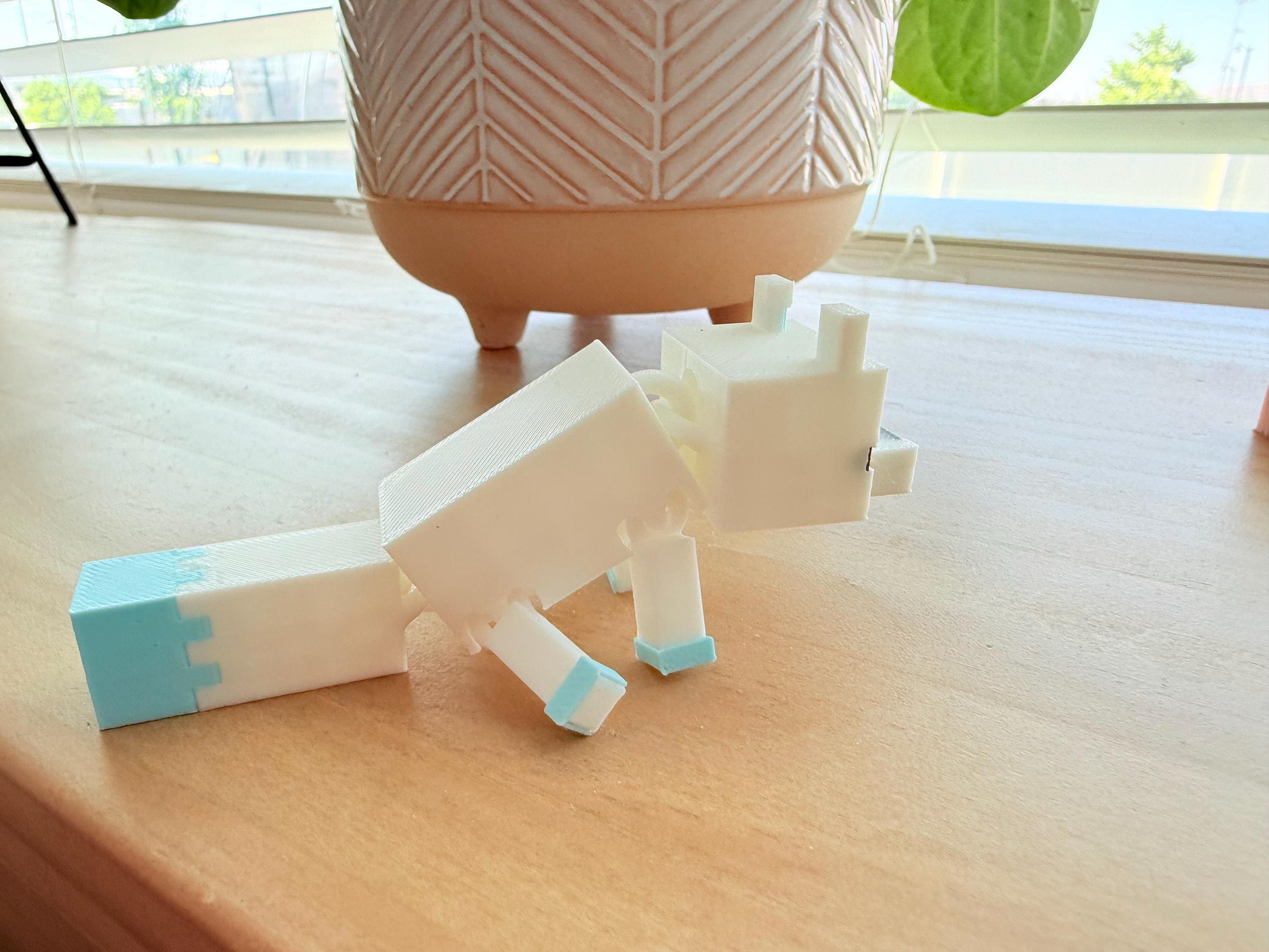 Bring a frosty friend from your favorite pixelated world to life! This Flexi Arctic Fox 3D Print is a fully articulated model inspired by Minecraft’s snowy biome fox. Printed in brilliant white with icy blue details, this fox is perfect as a desk buddy, shelf decoration, or a charming gift for the Minecraft fan in your life.