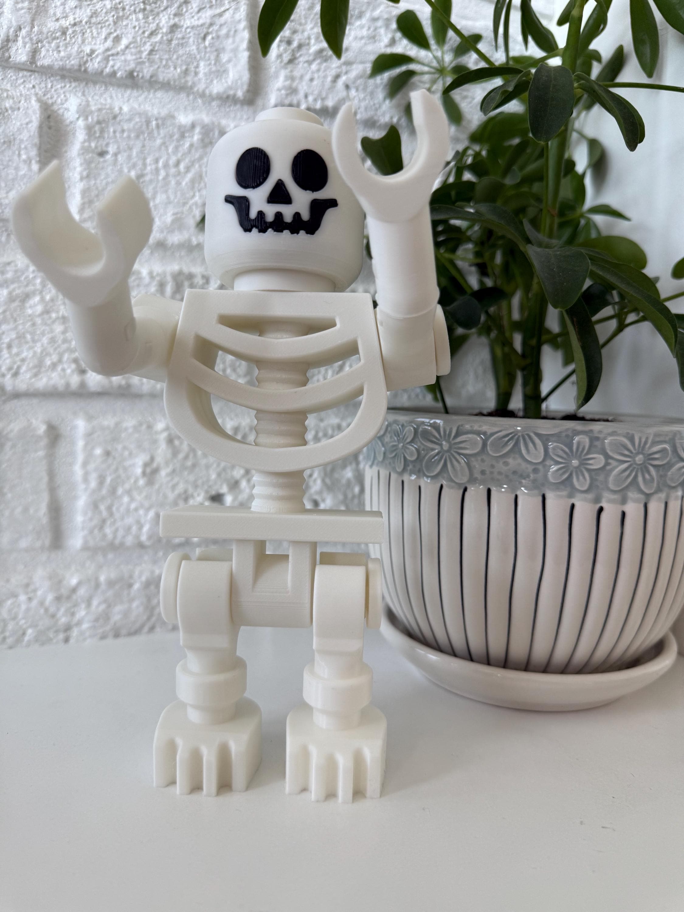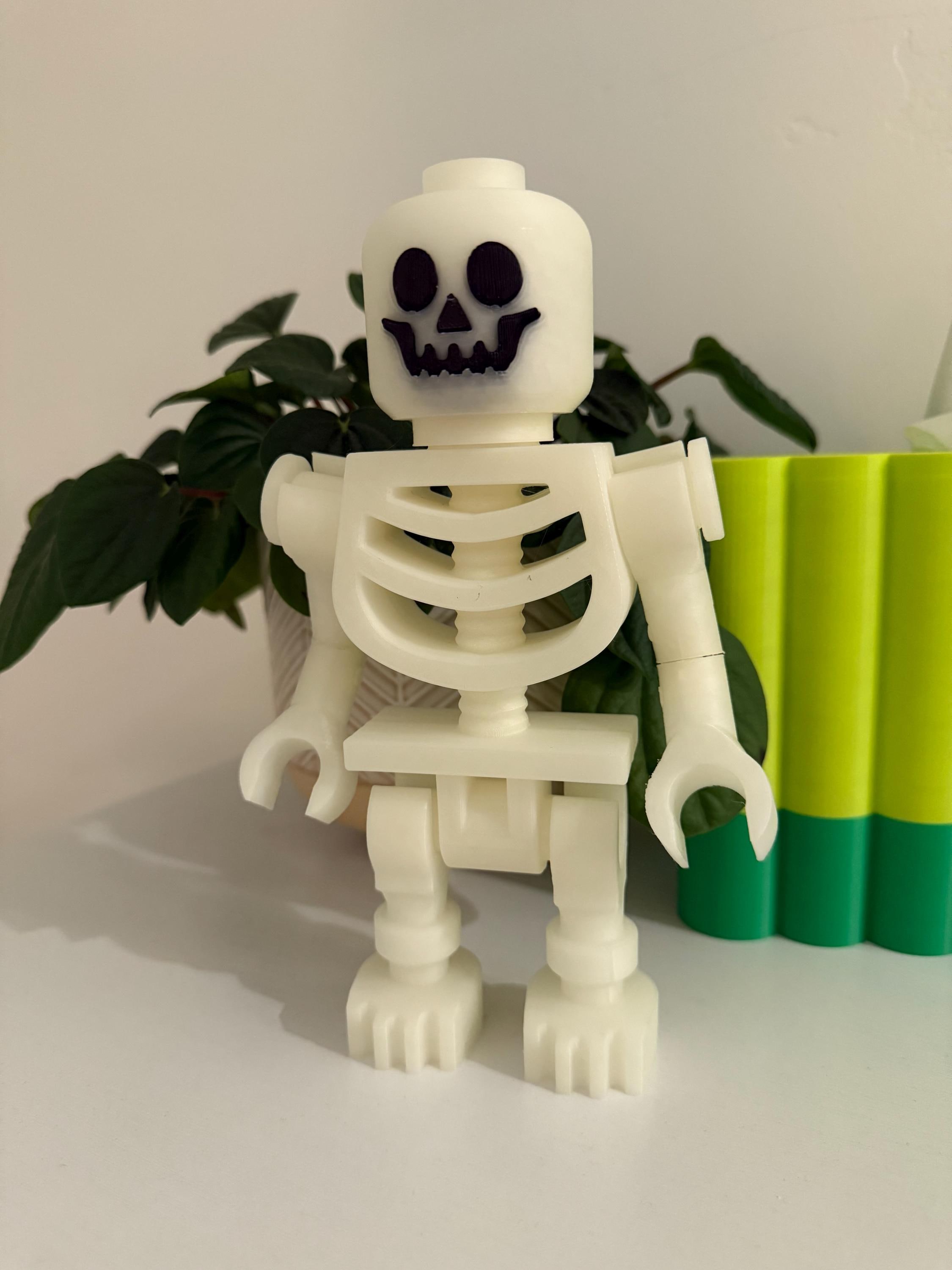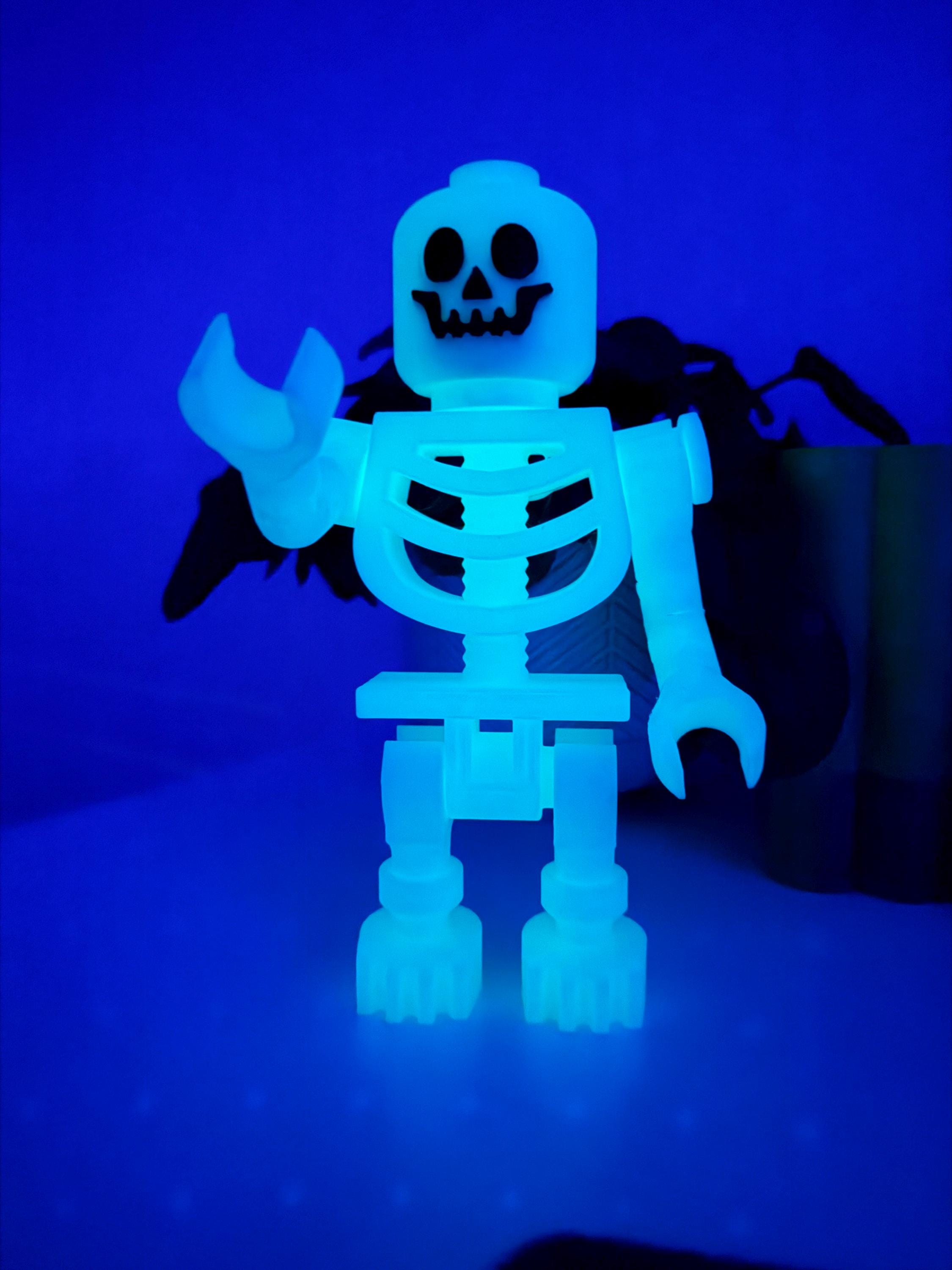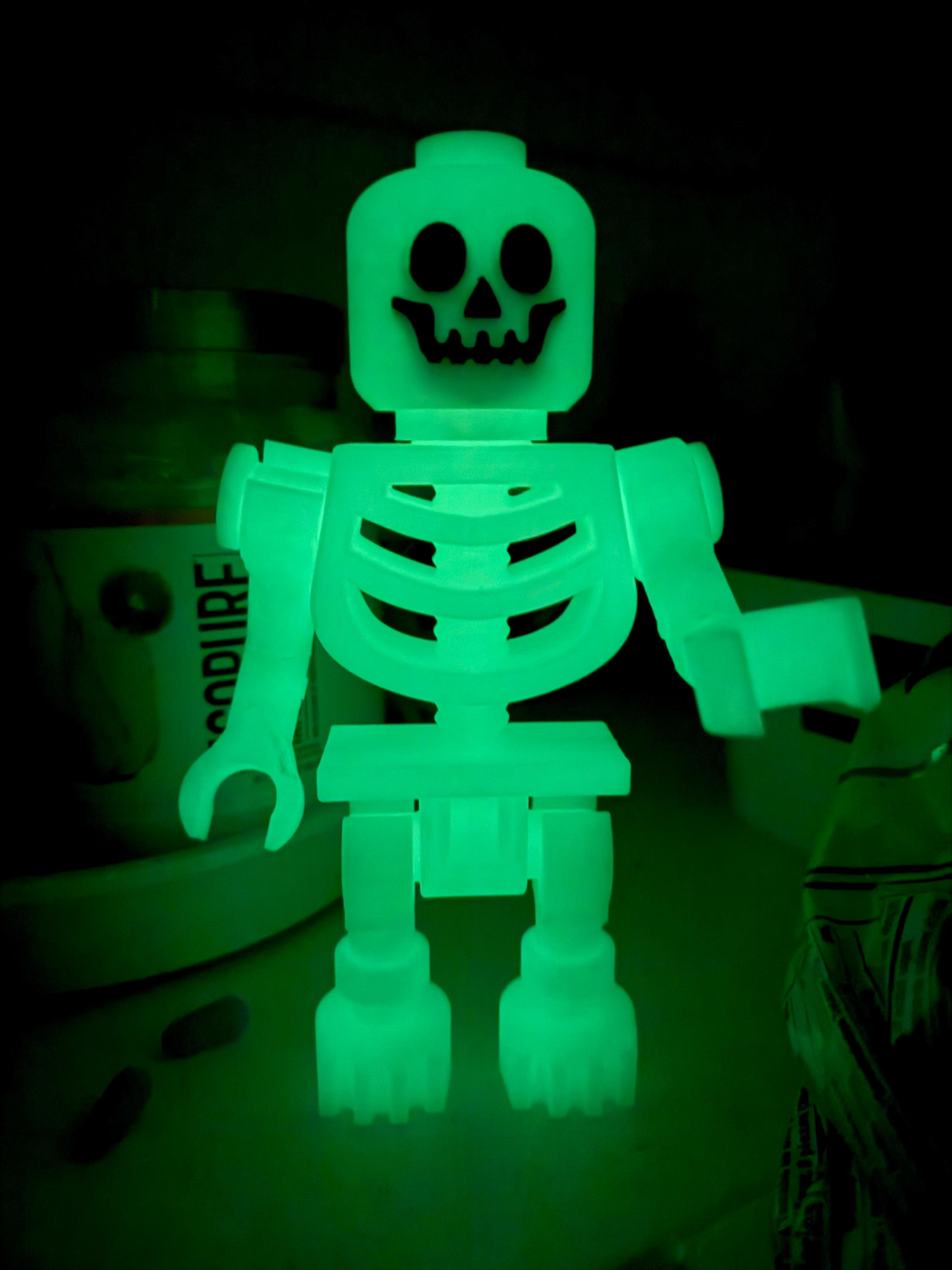 This giant, glow-in-the-dark poseable skeleton minifigure is ready to haunt your desk, guard your candy bowl, or strike a goofy pose for Halloween photos. Standing about 9 inches tall, it’s a LEGO-inspired collectible that’s equal parts spooky and fun.
