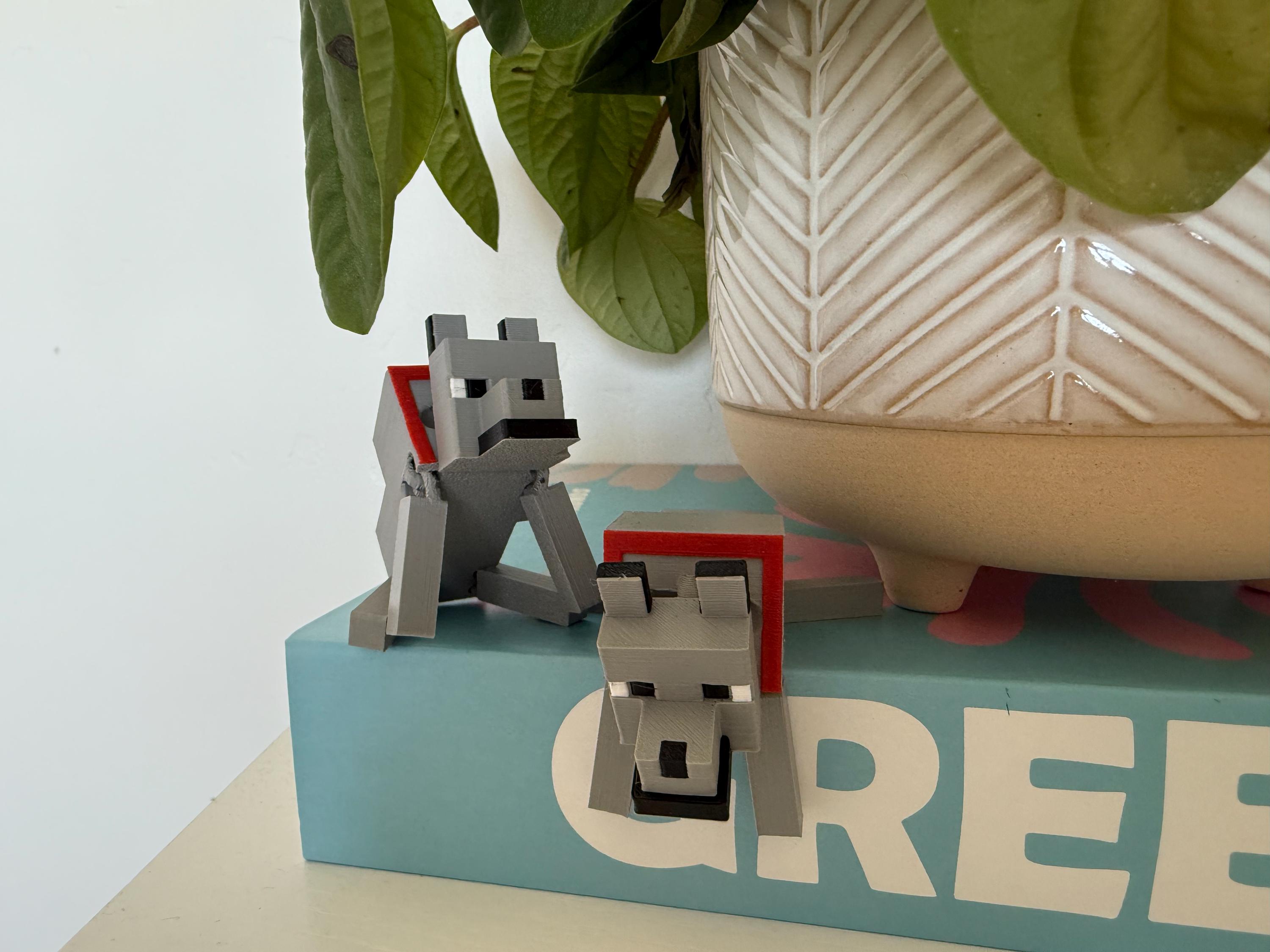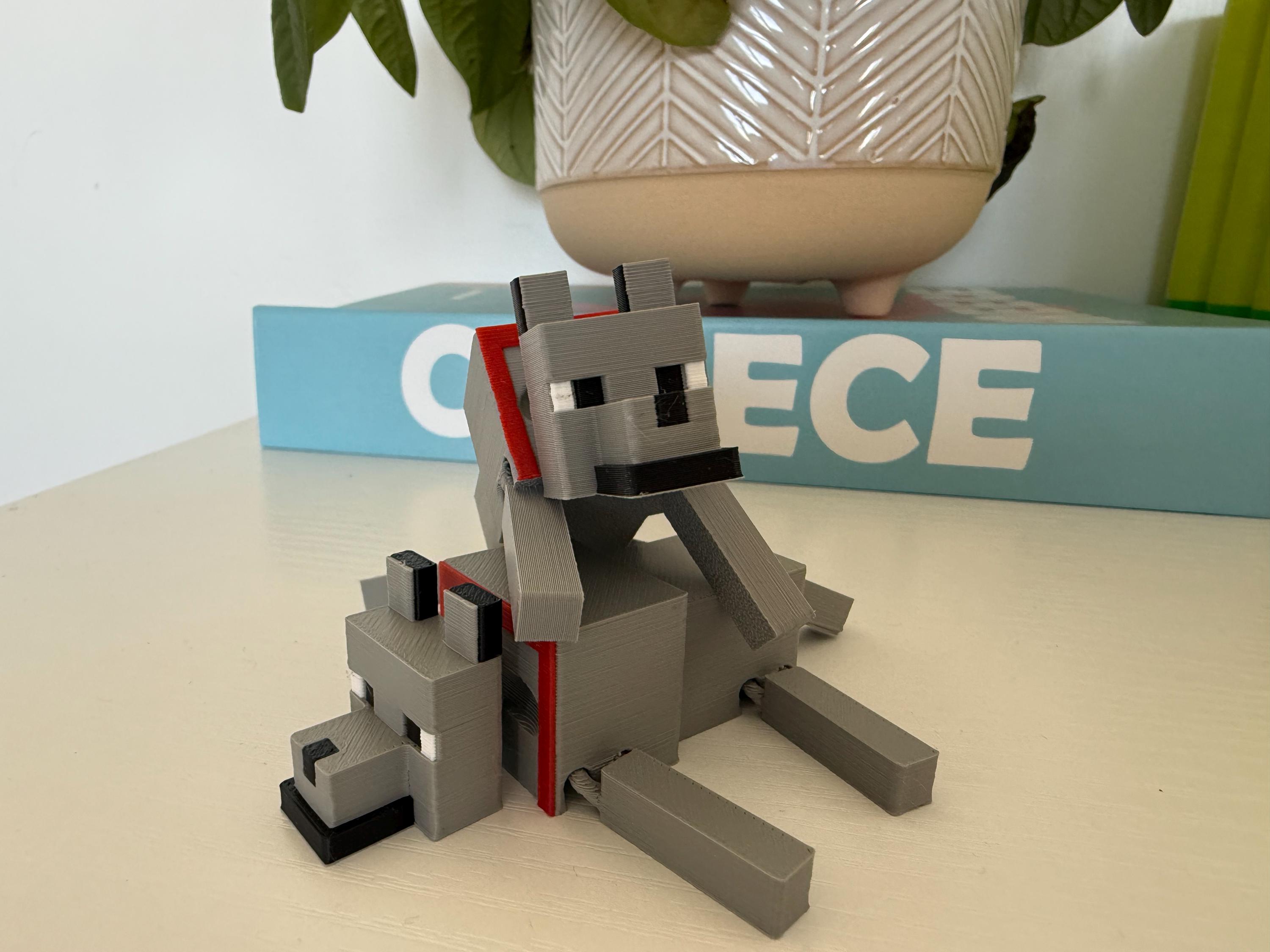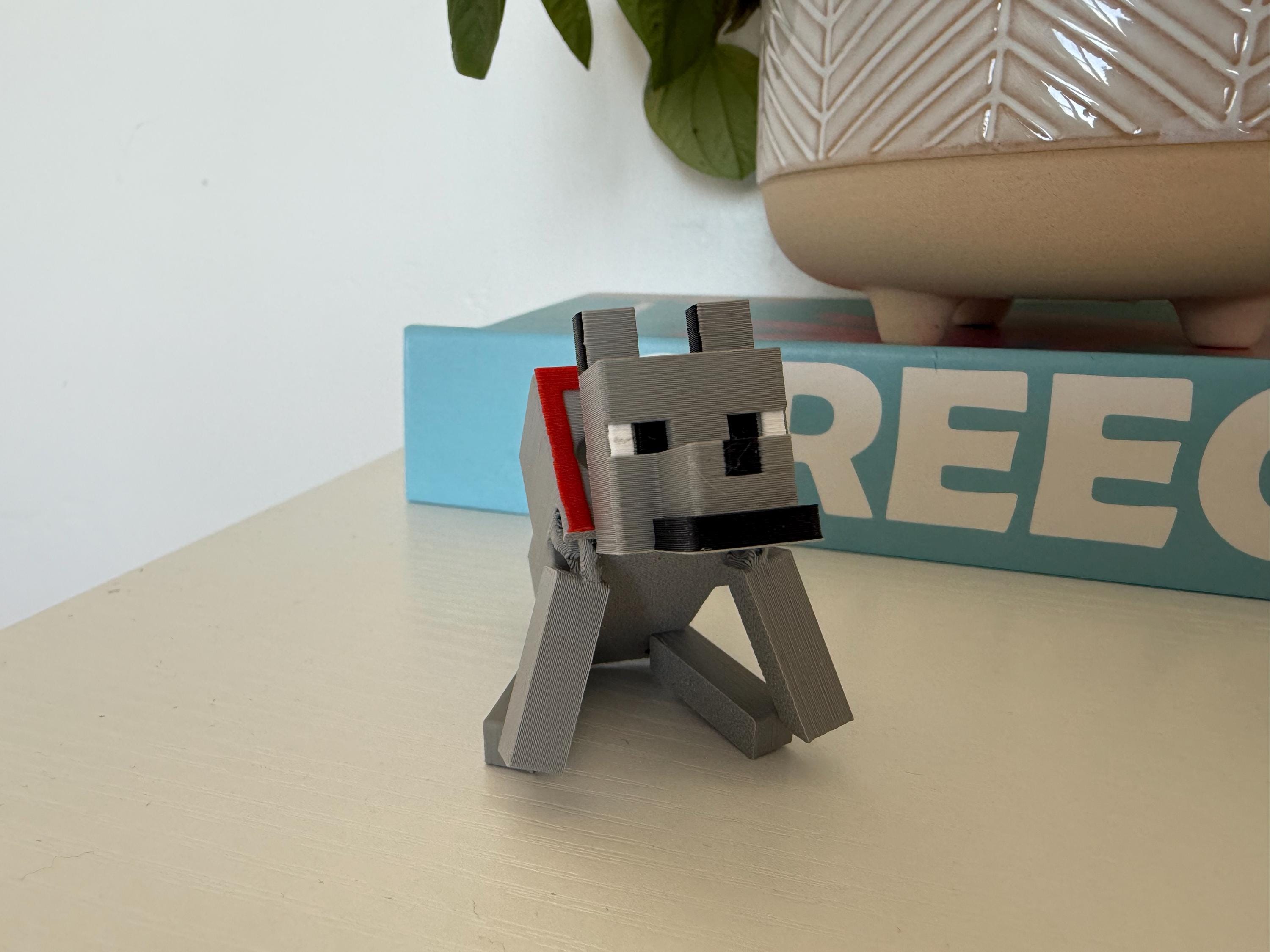 Bring a piece of the Overworld home with this hand-crafted, 3D printed model of Dennis the Wolf from A Minecraft Movie (2025). Based on the character who first appears as a wild wolf and is later tamed by Steve using a bone, Dennis is beloved among fans for his loyalty, charm, and blocky, iconic design.