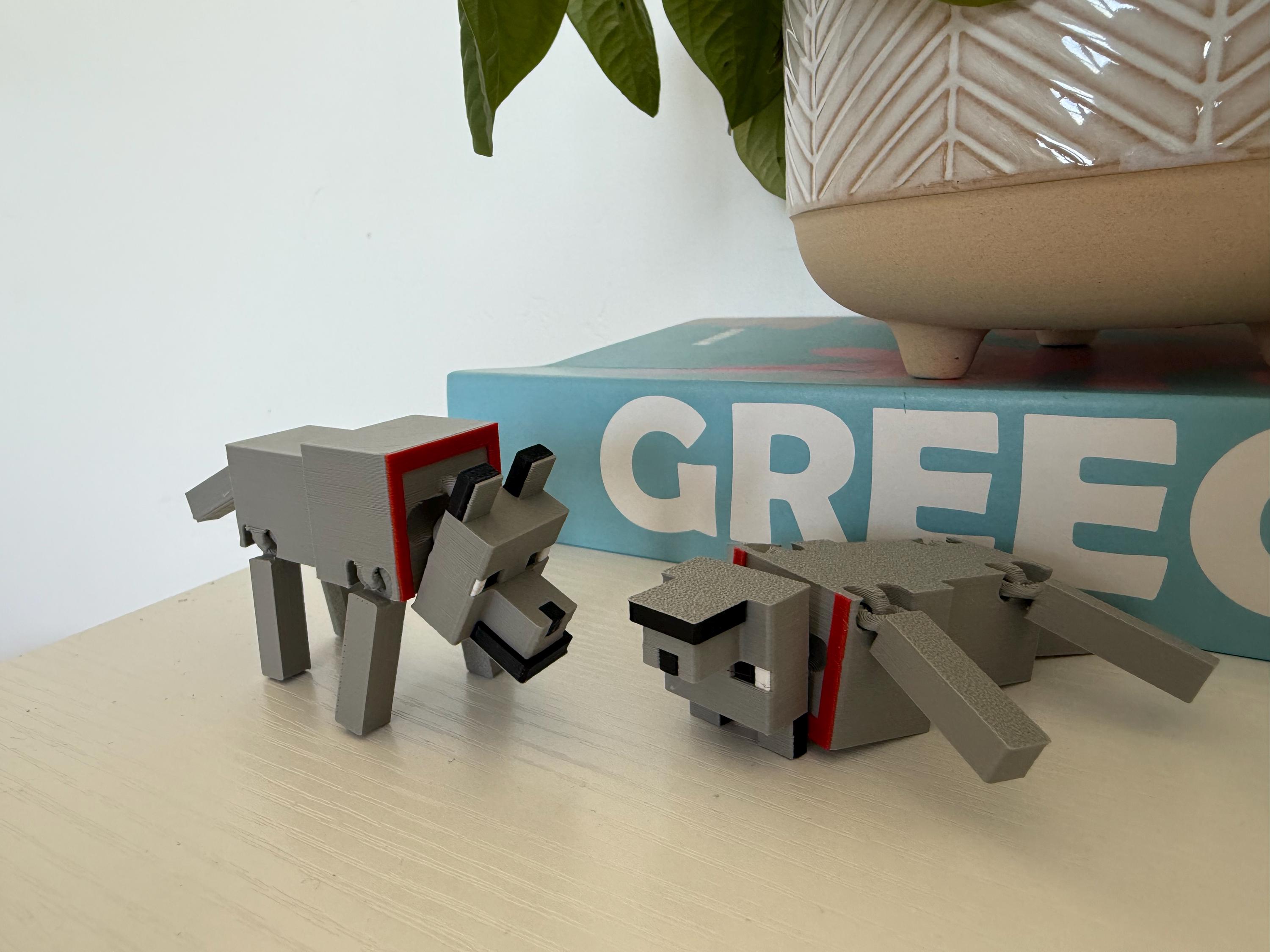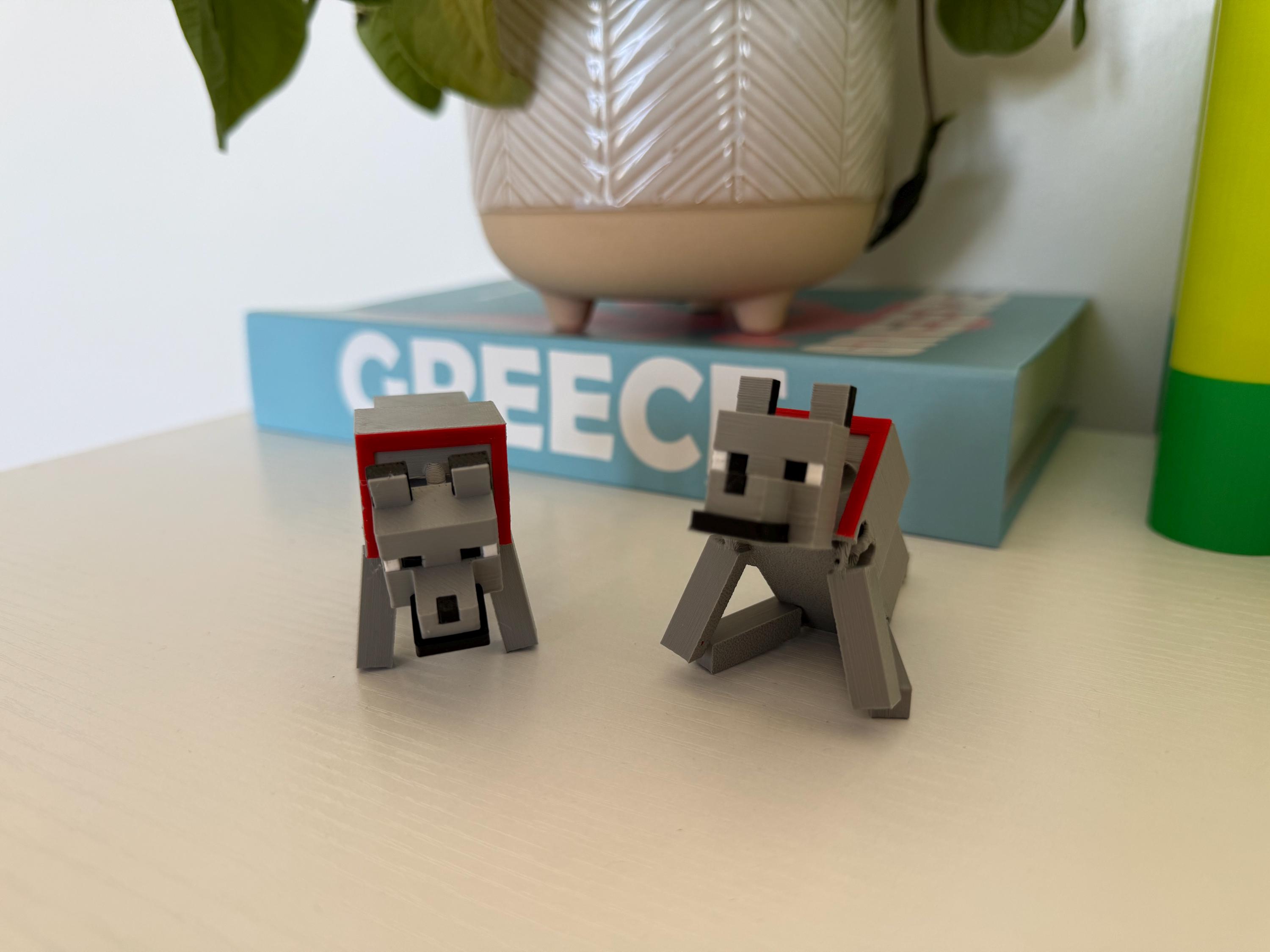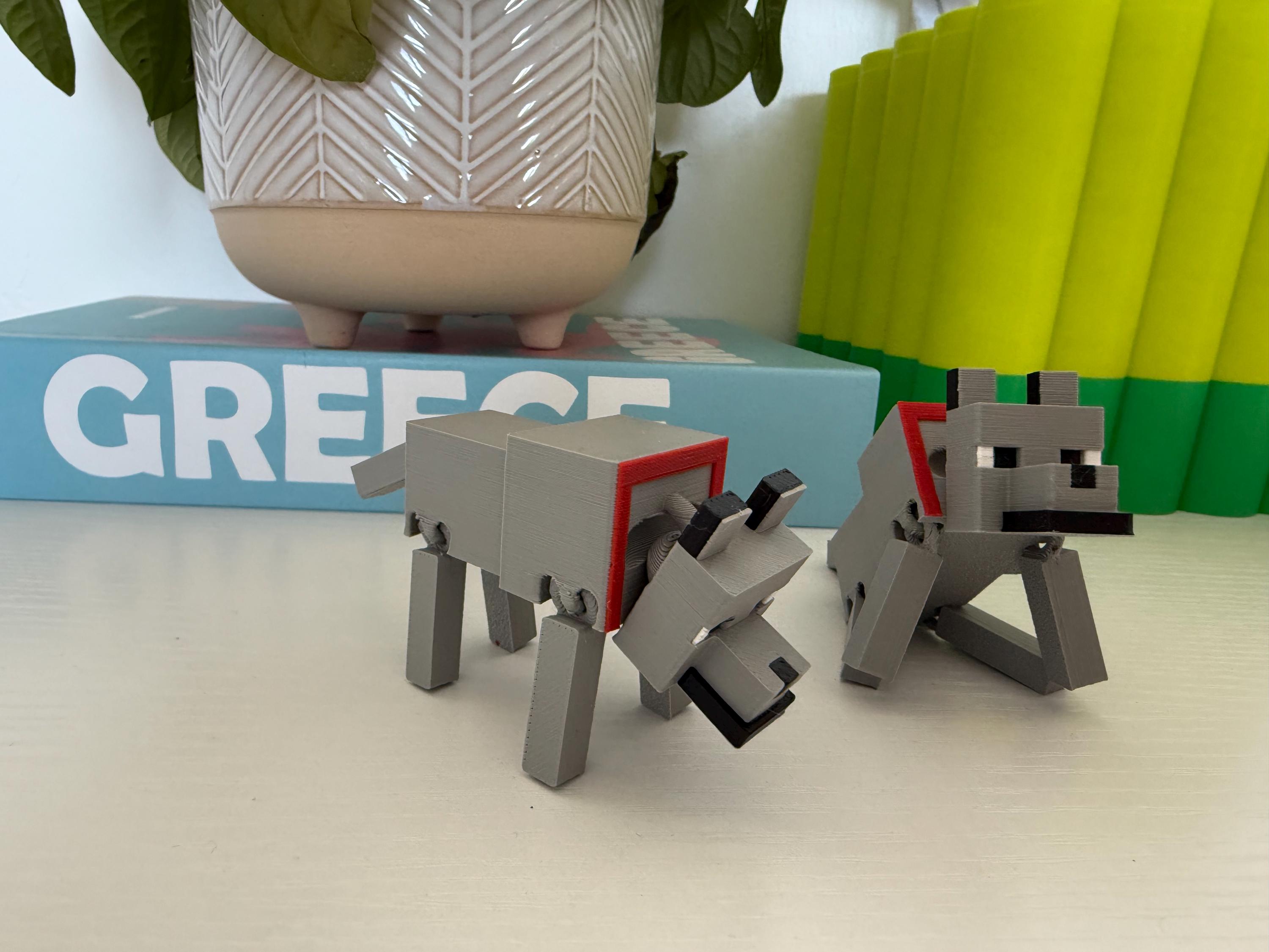 Bring a piece of the Overworld home with this hand-crafted, 3D printed model of Dennis the Wolf from A Minecraft Movie (2025). Based on the character who first appears as a wild wolf and is later tamed by Steve using a bone, Dennis is beloved among fans for his loyalty, charm, and blocky, iconic design.