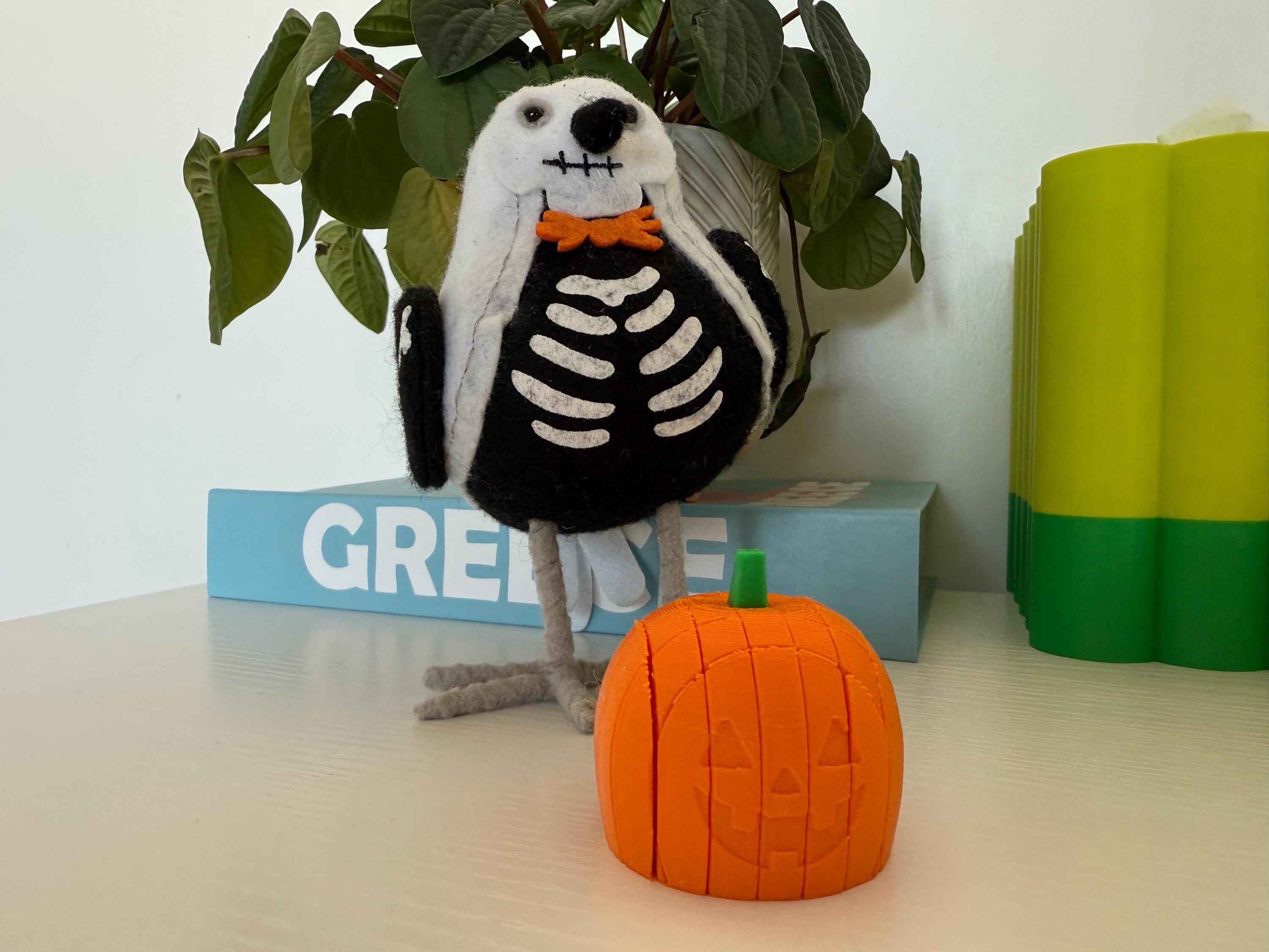 This 3D printed, fully articulated pumpkin folds flat and then expands into a blocky Jack-O’-Lantern, making it the perfect mix of decor and fidget toy. The pixelated design is inspired by classic video game style, with a playful hinged construction that makes it endlessly fun to handle.