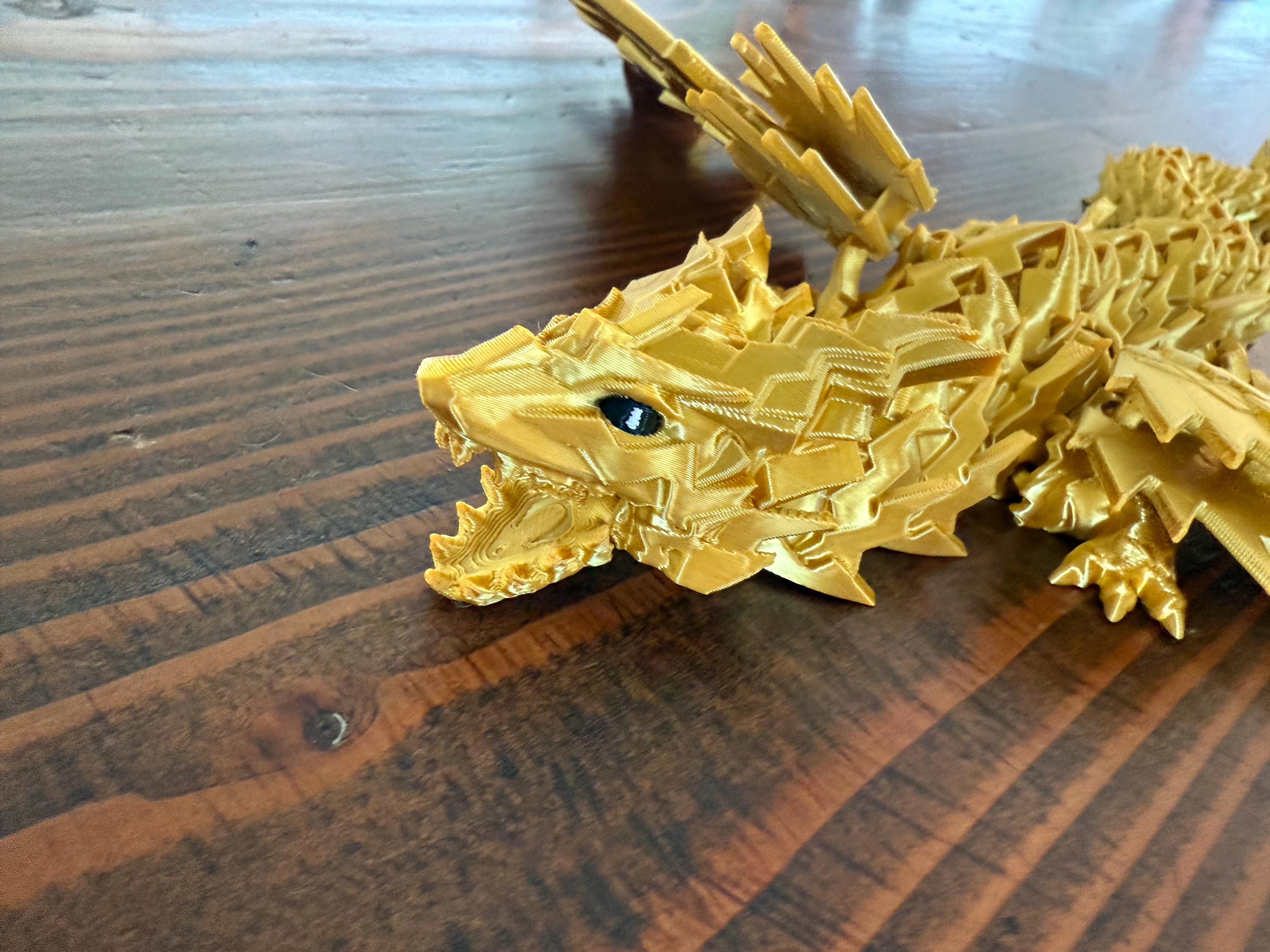 Bring the storm to life with Thunderstrike, a fierce, fully articulated lightning dragon designed for collectors, fantasy fans, and 3D print lovers alike. With sharp lightning-shaped scales, massive jagged wings, and a movable jaw, this dragon embodies the untamed power of thunder and energy.