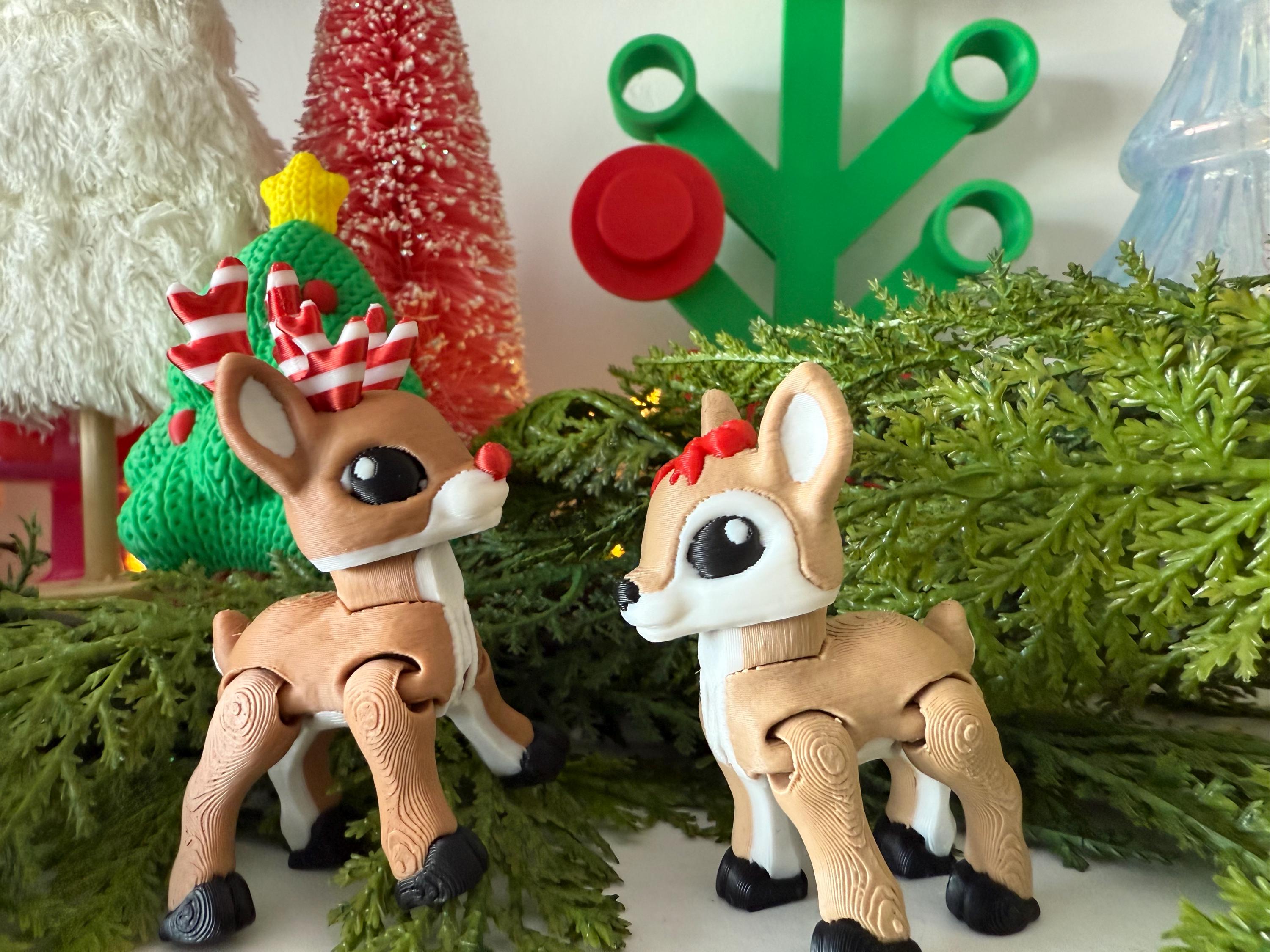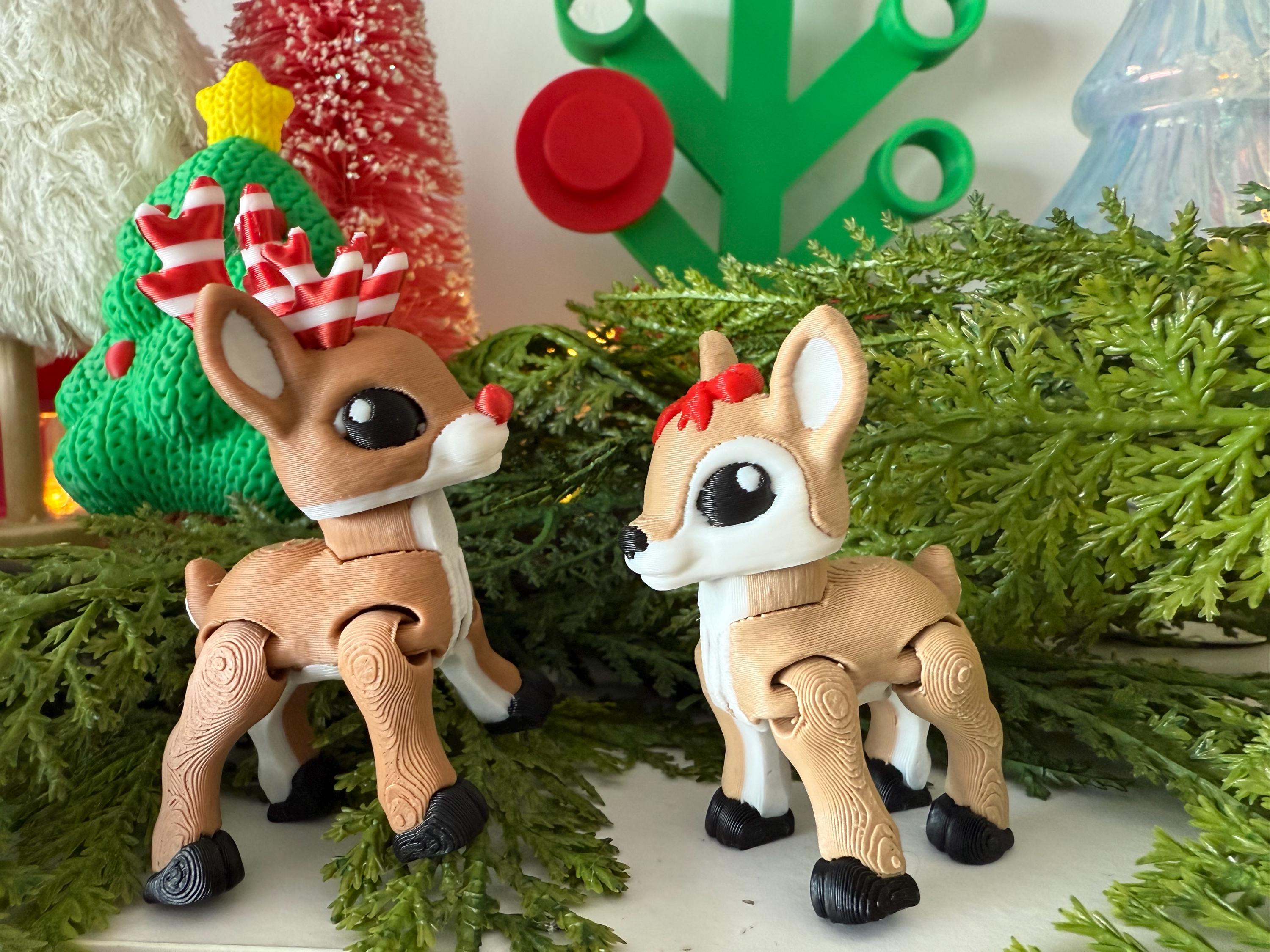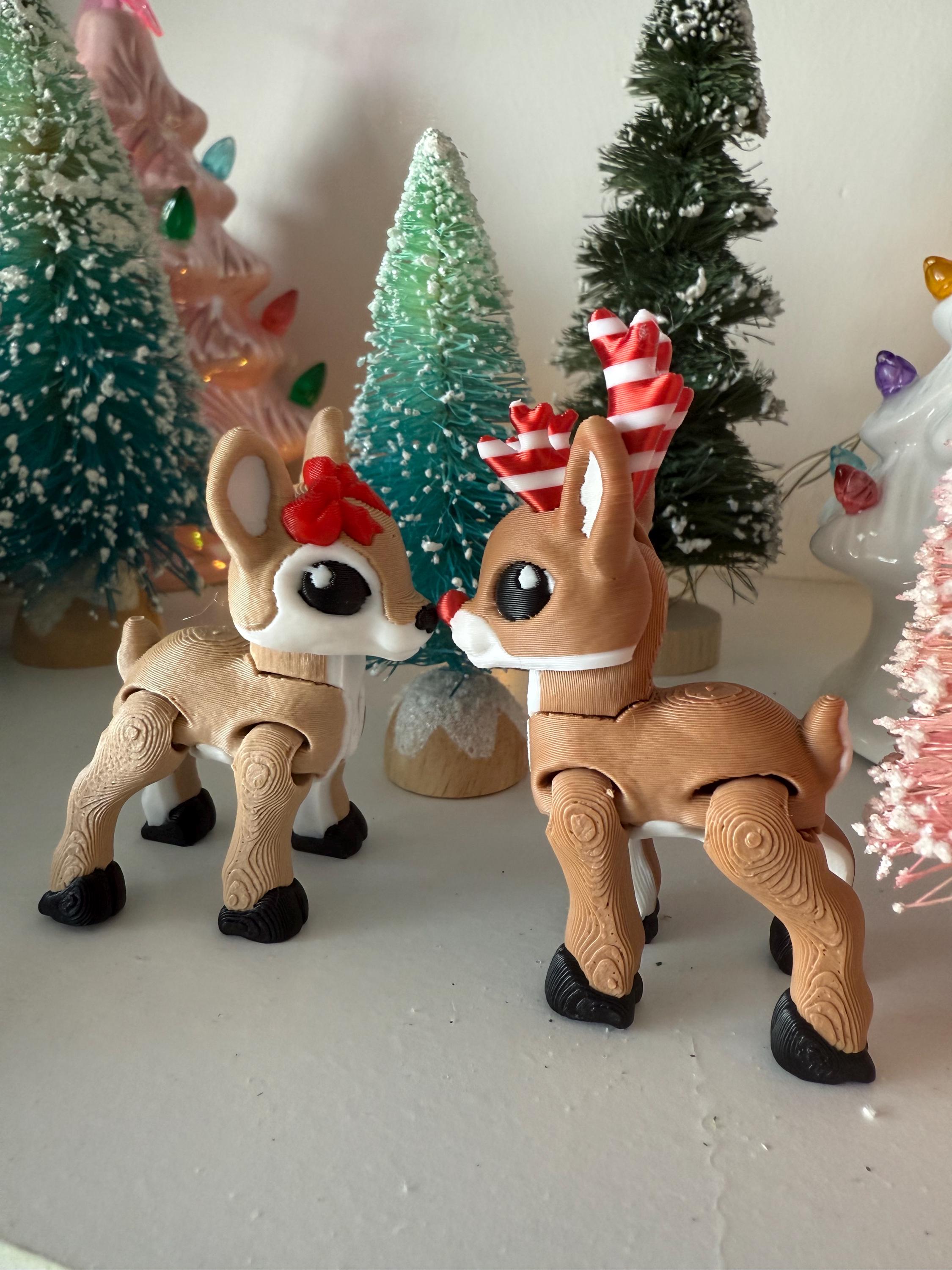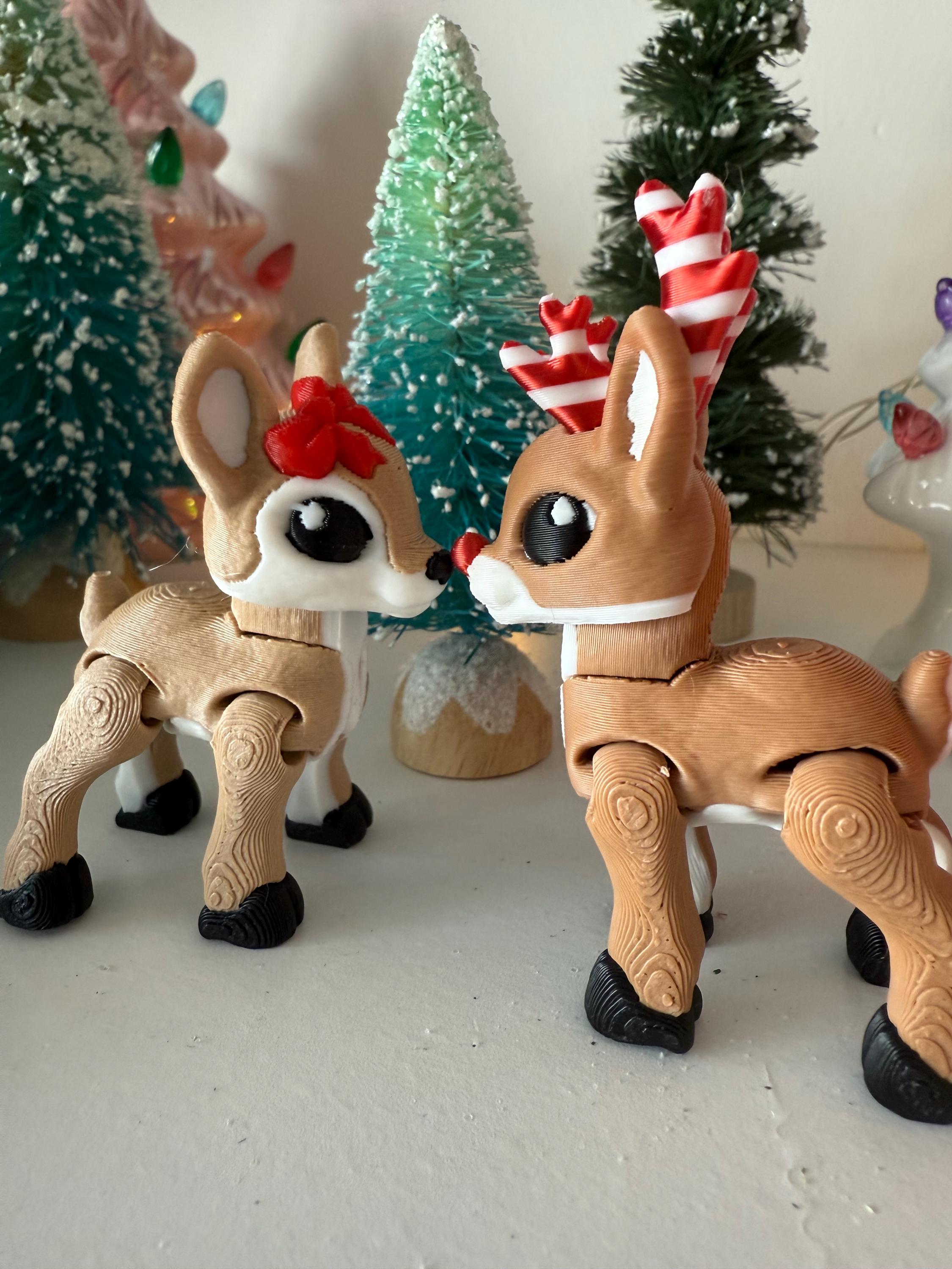 Each reindeer is brought to life on my Bambu printers, then cleaned and assembled by hand. Their legs and heads really move, so you can pose them nose to nose, mid prance, or standing proudly under the tree. Rudolph shows off his bright red nose and candy cane antlers while Clarice wears her classic red bow and the sweetest expression. They look like they stepped straight out of the Rudolph movie. 🎁🕯️