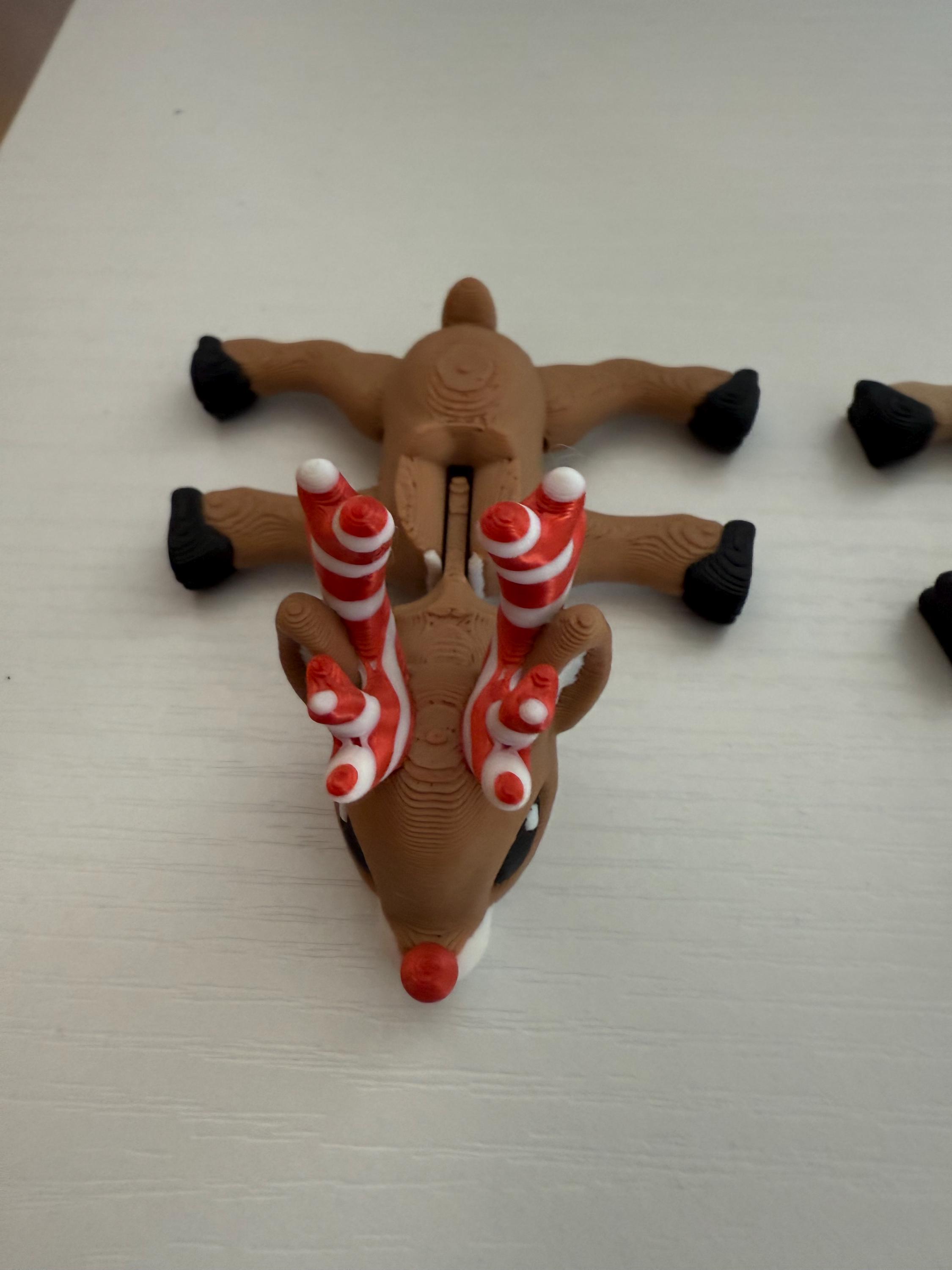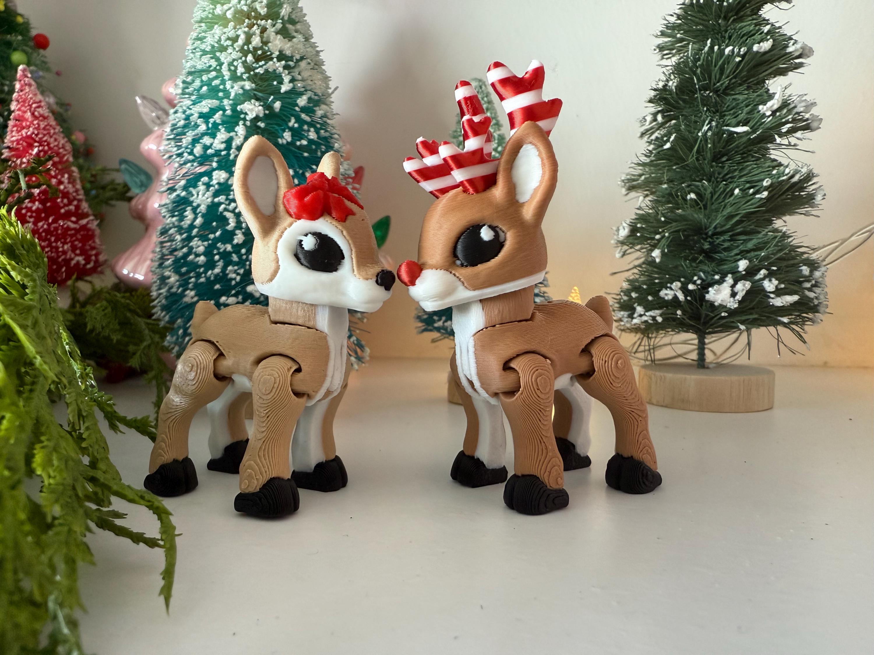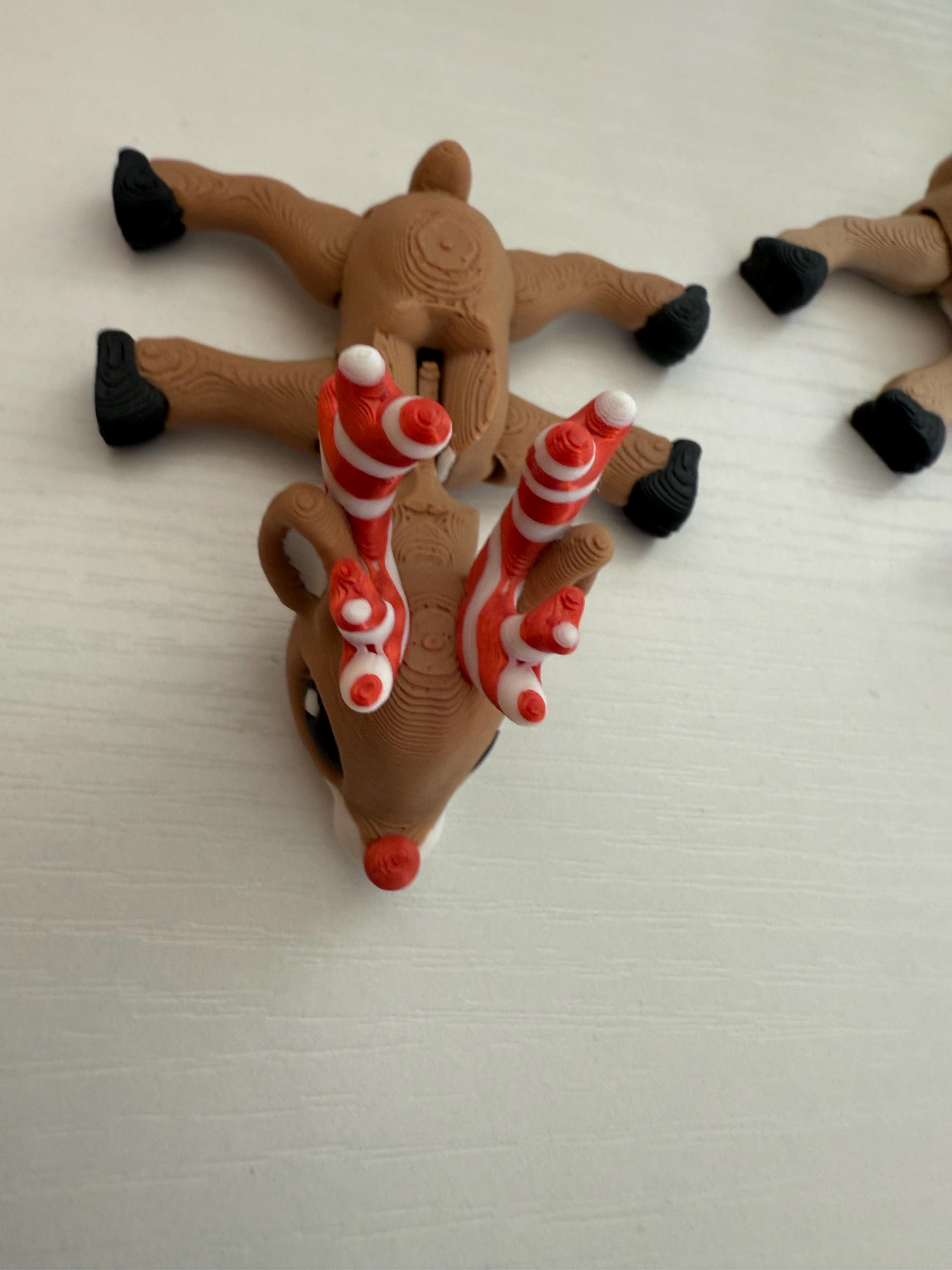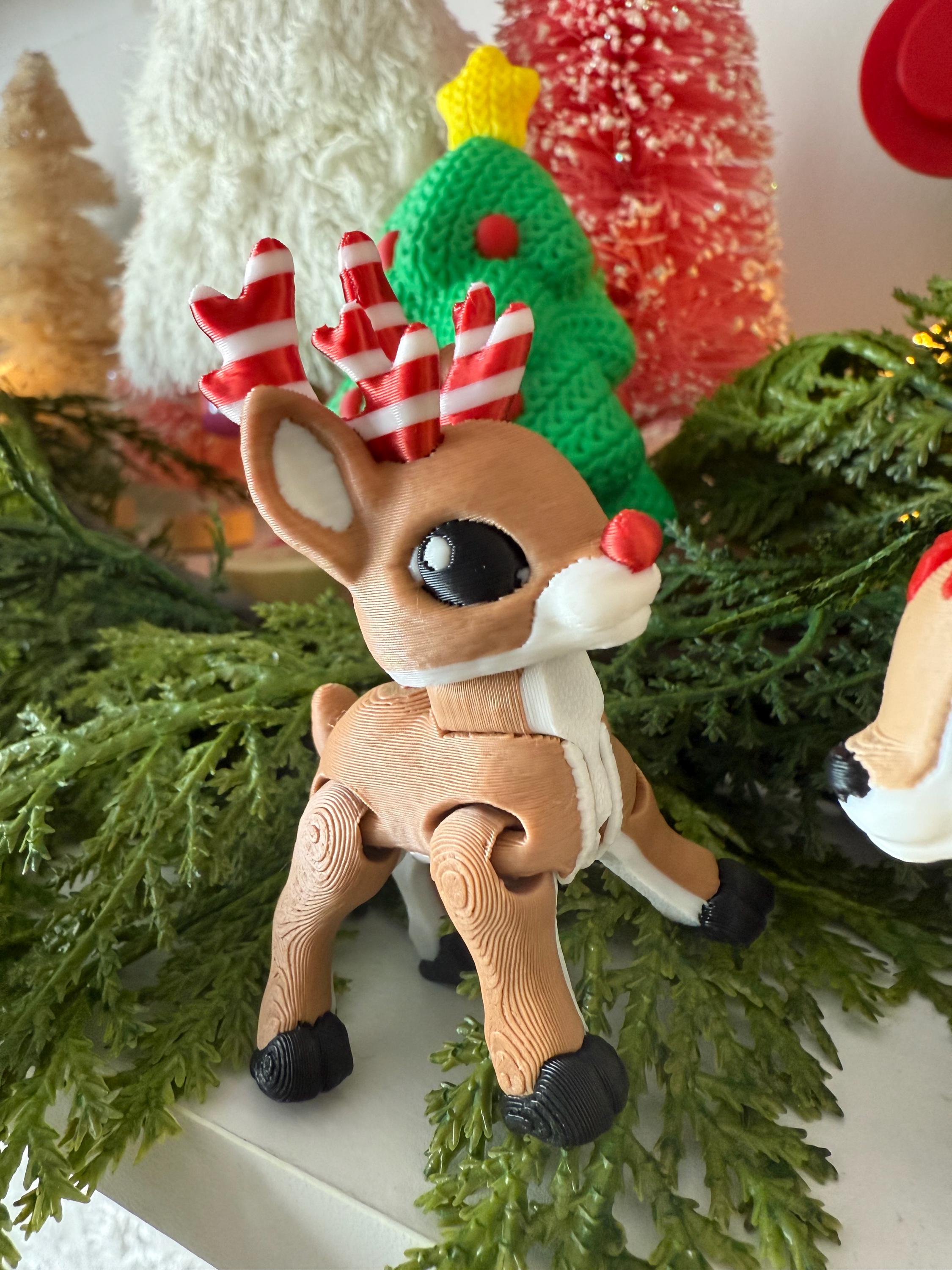 Each reindeer is brought to life on my Bambu printers, then cleaned and assembled by hand. Their legs and heads really move, so you can pose them nose to nose, mid prance, or standing proudly under the tree. Rudolph shows off his bright red nose and candy cane antlers while Clarice wears her classic red bow and the sweetest expression. They look like they stepped straight out of the Rudolph movie. 🎁🕯️